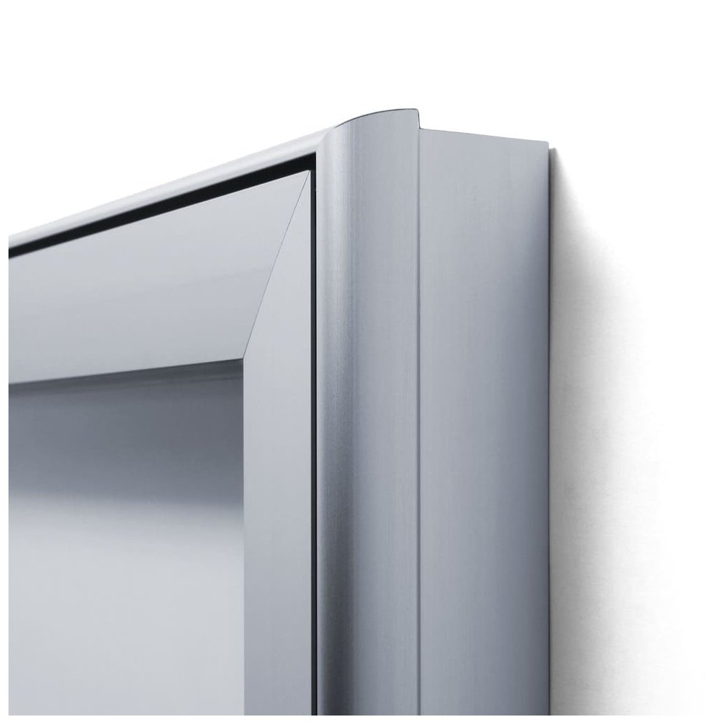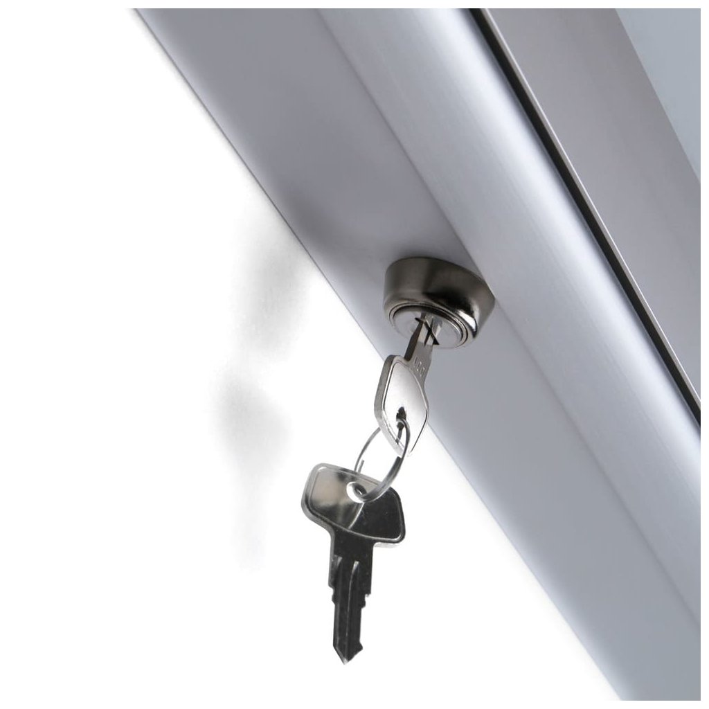 A mágneses és írható fémlemez hátlap könnyű és gyors módot ad a dokumentumok rögzítésére és frissítésére, miközben a felfelé nyíló ajtó kényelmes hozzáférést biztosít a tartalomhoz. A hengeres zár tovább növeli a biztonságot, megakadályozva az illetéktelen hozzáférést.