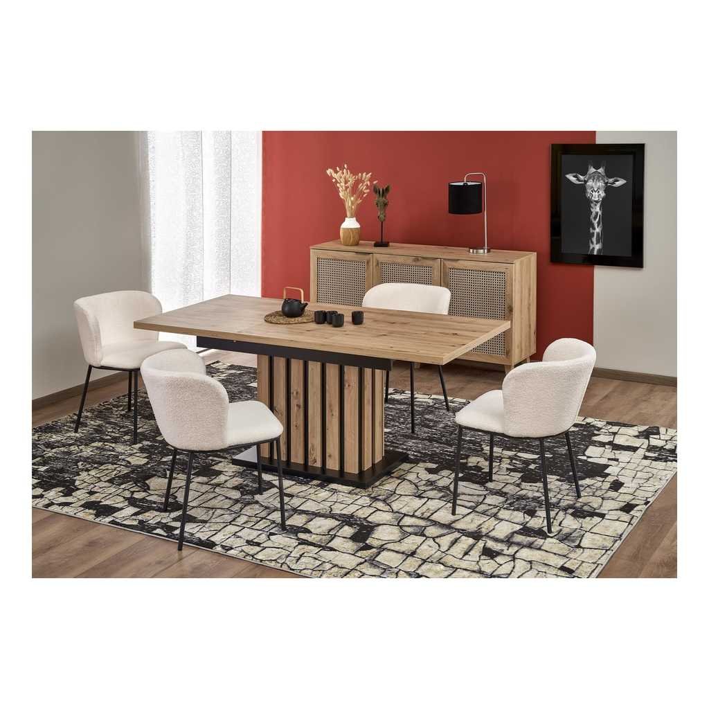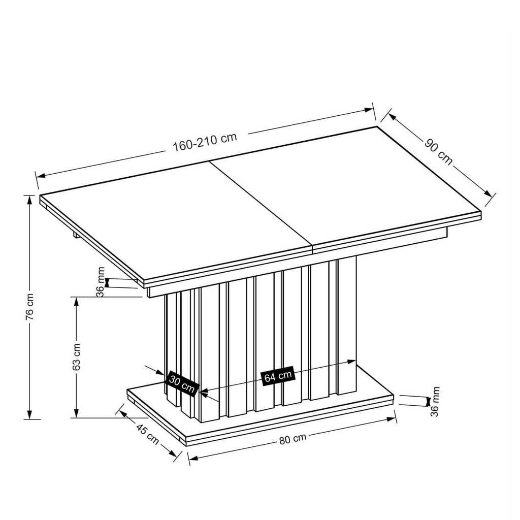 Különösen előnyös az asztal bővíthetősége, amely lehetővé teszi a hosszúság 160 cm-ről akár 210 cm-re történő növelését, így akár 8 ülőhelyet is biztosíthat egyszerre. Ez rugalmas megoldást kínál, ha több vendéget várunk vagy nagyobb helyre van szükségünk az étkezések során.