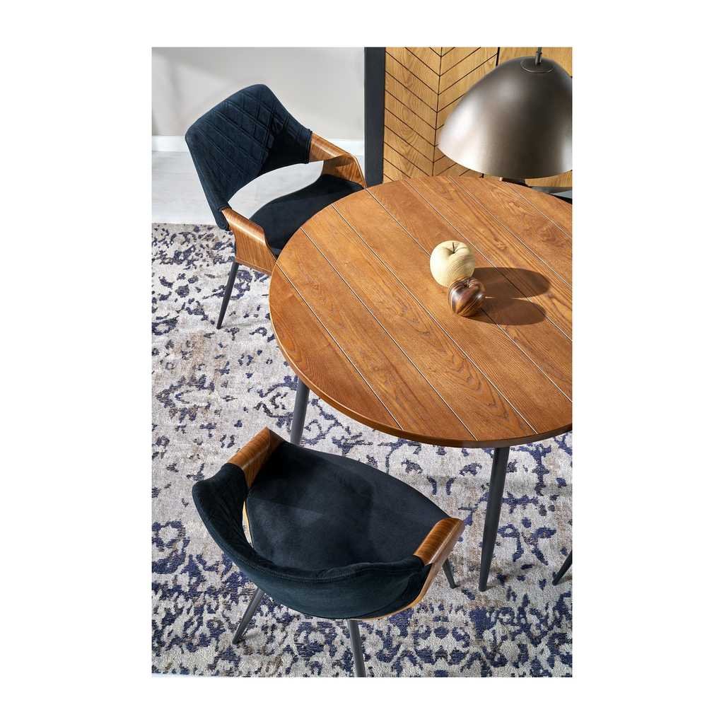A Laplace étkezőasztal stílusos és praktikus választás minden otthonba. Kerek formájának köszönhetően közvetlen, barátságos légkört teremt, miközben elegendő helyet biztosít akár négy személy számára is. A fa asztallap természetes megjelenést és tartósságot nyújt, míg a masszív fém lábak stabil alapot biztosítanak a mindennapi használathoz.