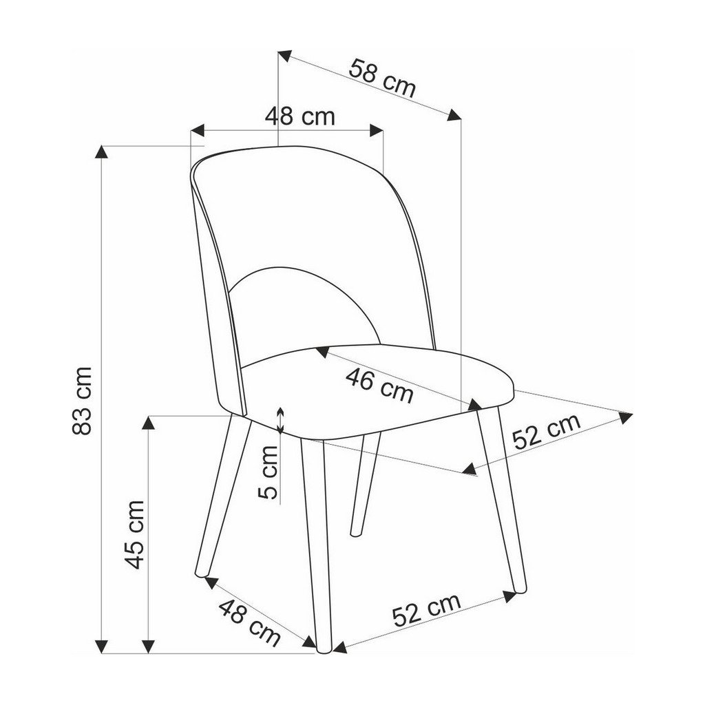 - Szélesség: 58 cm, mélység: 52 cm, magasság: 83 cm