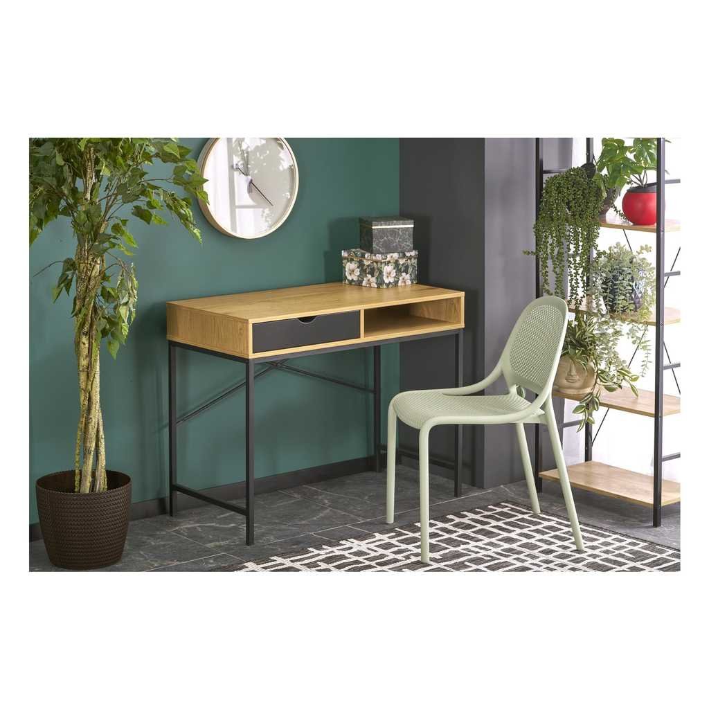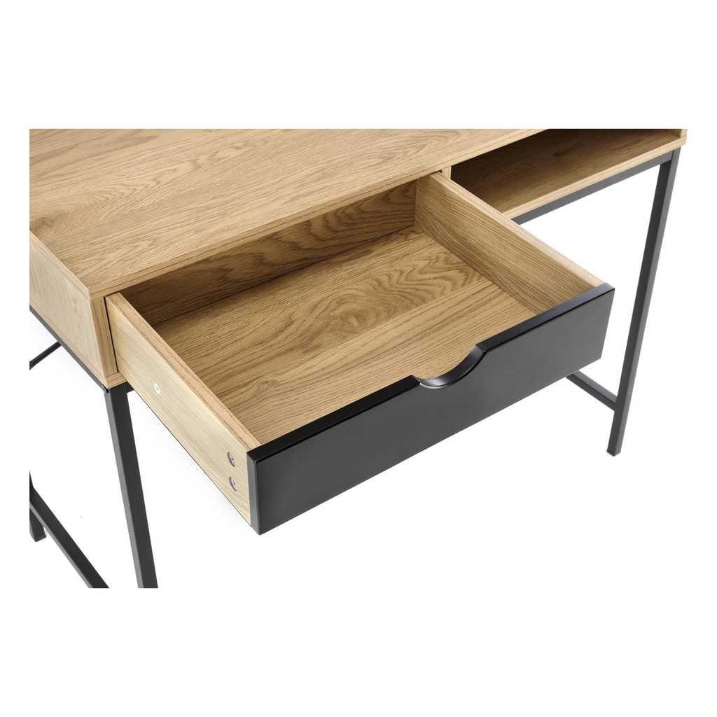 Az íróasztal 40 kg teherbírású, így kisebb elektronikai eszközök és egyéb munkaeszközök elhelyezésére kiválóan alkalmas. Az egy fiókkal, valamint egy nyitott rekesszel felszerelt kialakítás révén könnyedén rendszerezheti munkakörnyezetét.