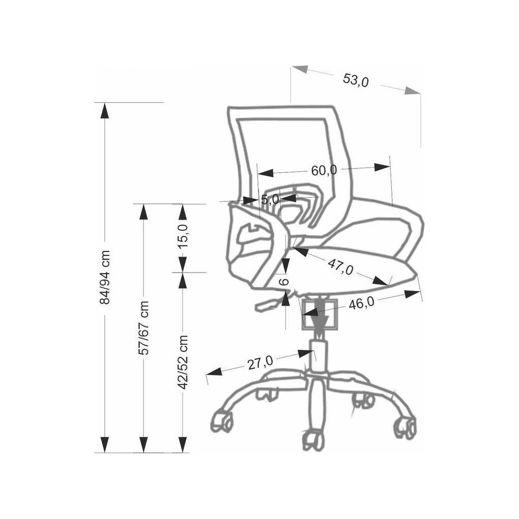 A széket stabil műanyag alap tartja, univerzális kerekekkel, melyek könnyű mozgást tesznek lehetővé bármilyen felületen. Rögzített karfái kényelmes támaszt nyújtanak, miközben az egyszerű kialakítás biztosítja a gyakorlati használatot. 100 kg teherbírásának és 5 éves garanciájának hála hosszú távon megbízható választás.