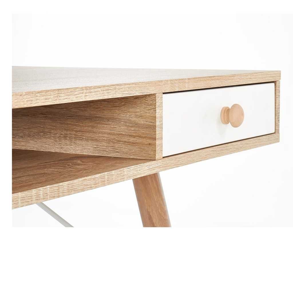 A Lukas íróasztal praktikus és esztétikus megoldás otthoni vagy irodai használatra egyaránt. A fa felső deszka és a fém alap biztosítja a stabilitást és tartósságot, miközben modern megjelenésével bármilyen térbe könnyen illeszthető. Az asztallap mérete ideális, elég nagy a munkához, ugyanakkor nem foglal túl sok helyet.