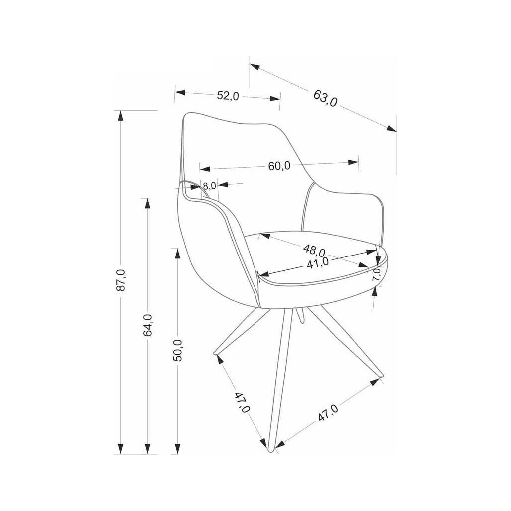 - Szélesség: 60 cm, mélység: 63 cm, ülésmélység: 48 cm