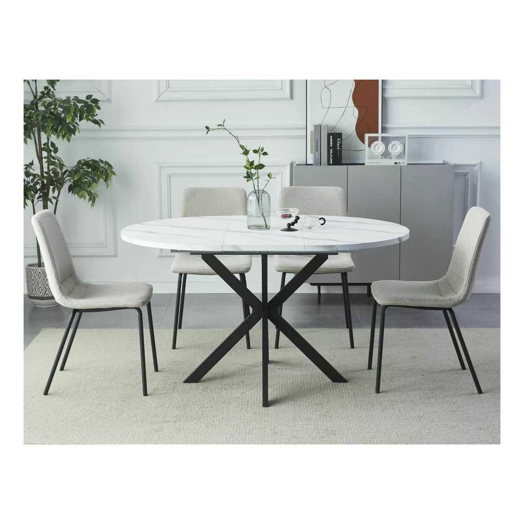 A Maxwell étkezőasztal modern és praktikus megoldás lehet otthonába, amely a kör alakú felső lapjával és bővíthető funkciójával kiválóan alkalmas akár kisebb, akár nagyobb családi összejövetelekre. A fa asztallap és a masszív fém alap kombinációja biztosítja a stabilitást és tartósságot, miközben a fekete márvány hatású felület eleganciát sugall bármely étkezőben.