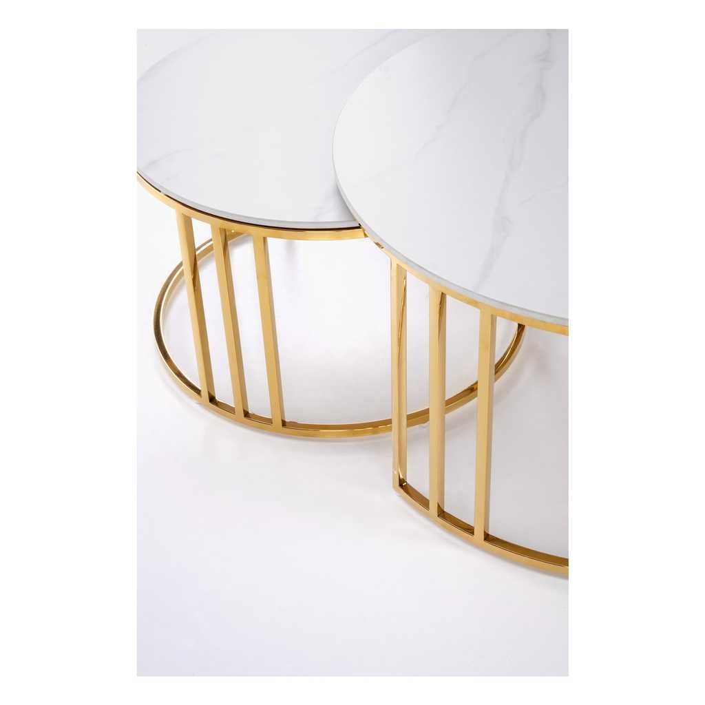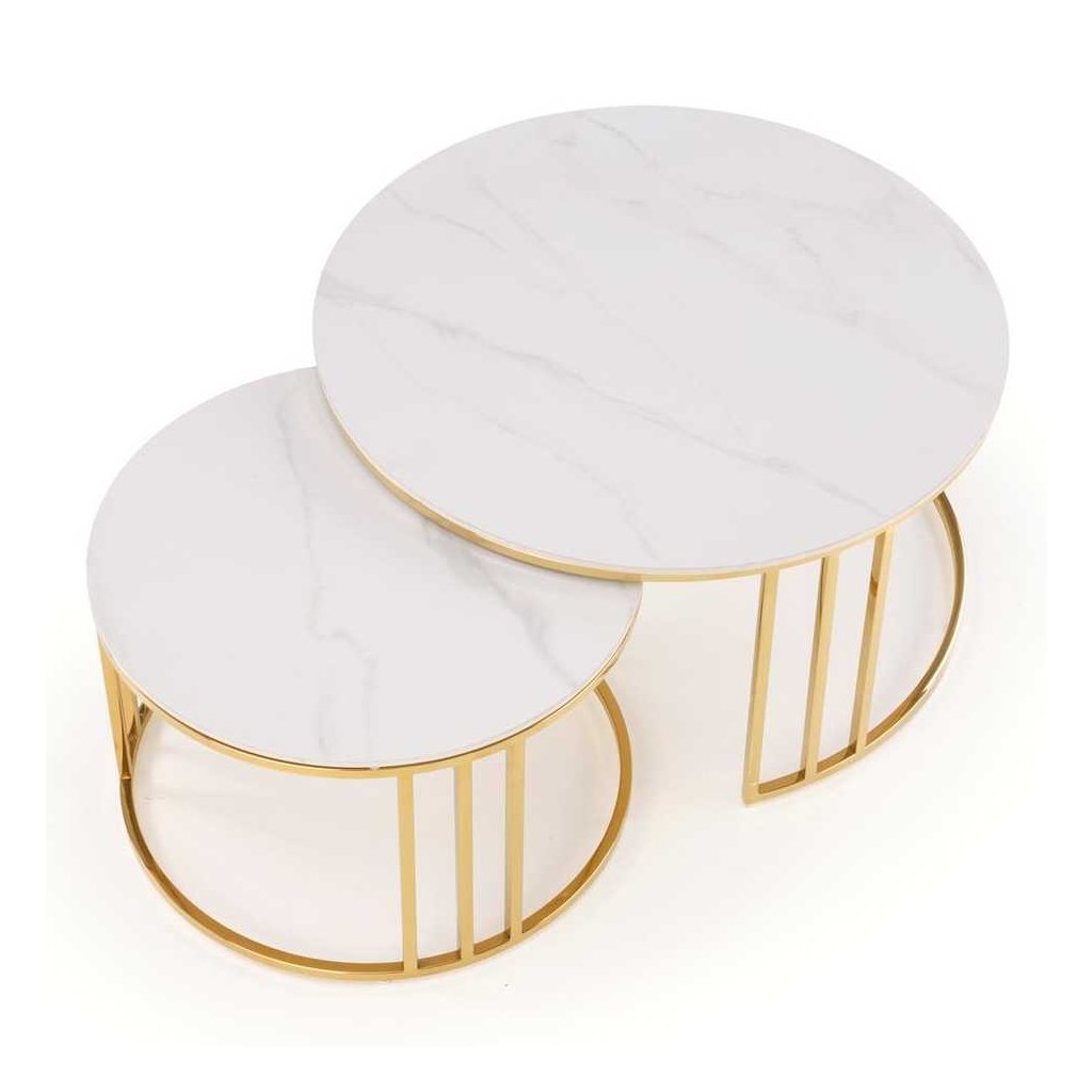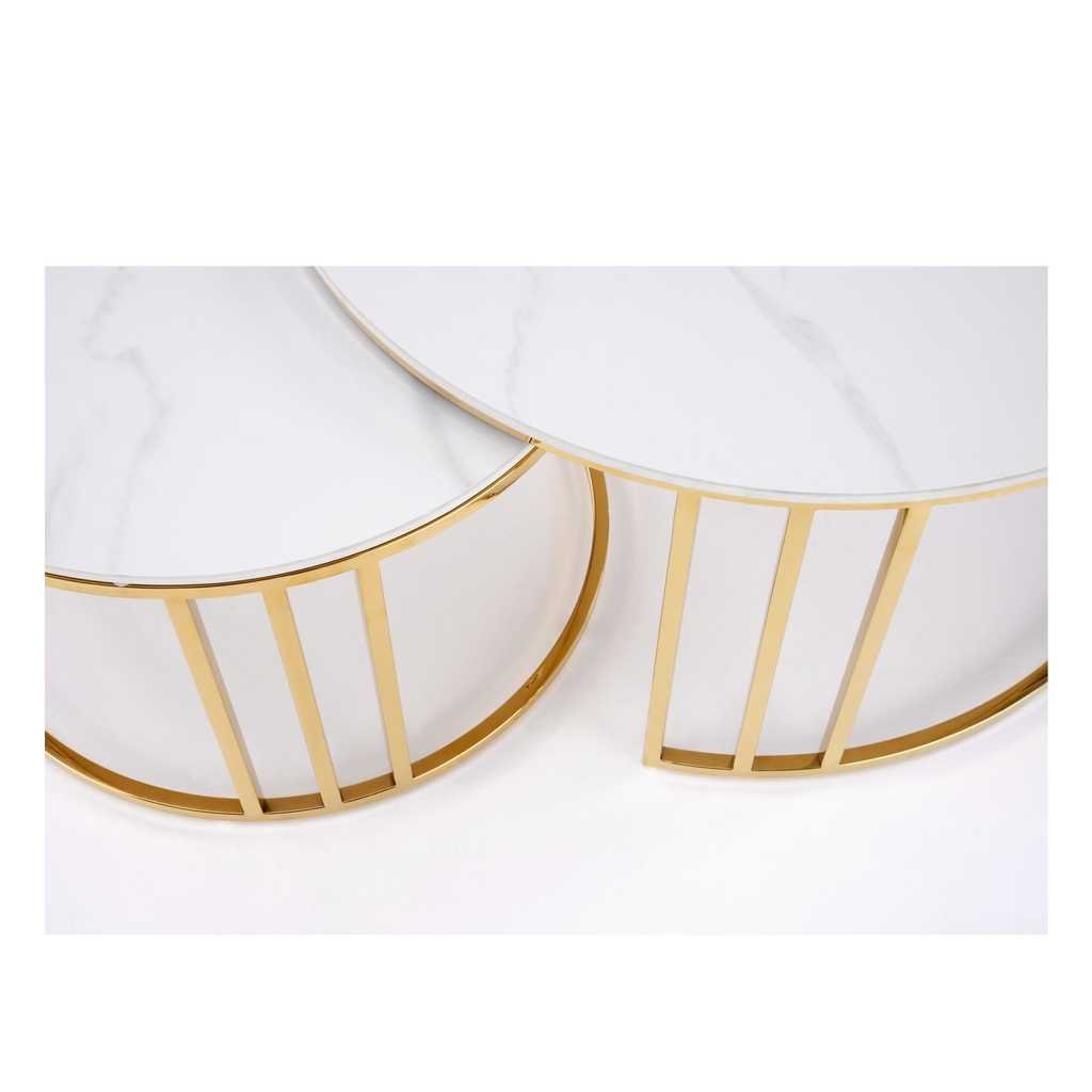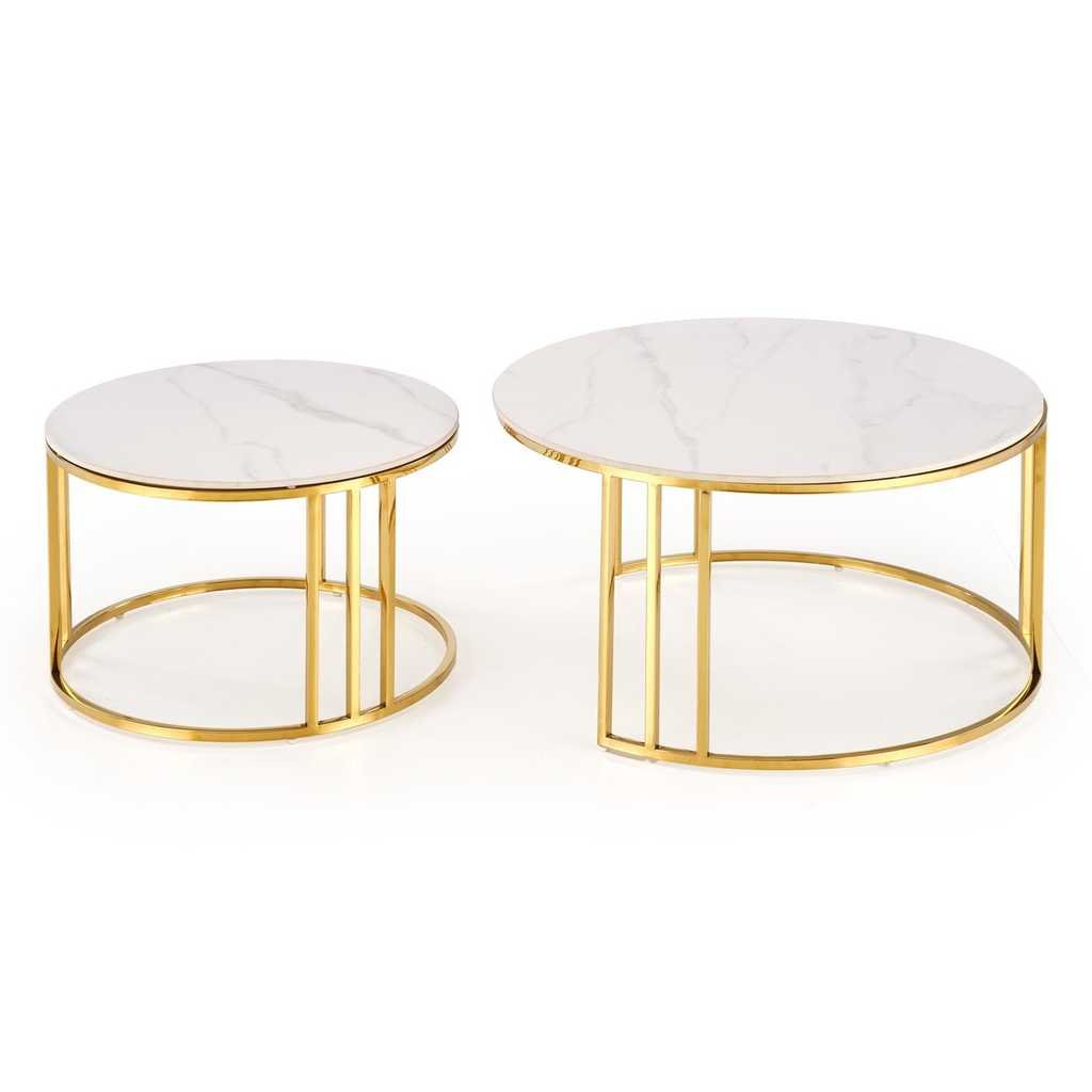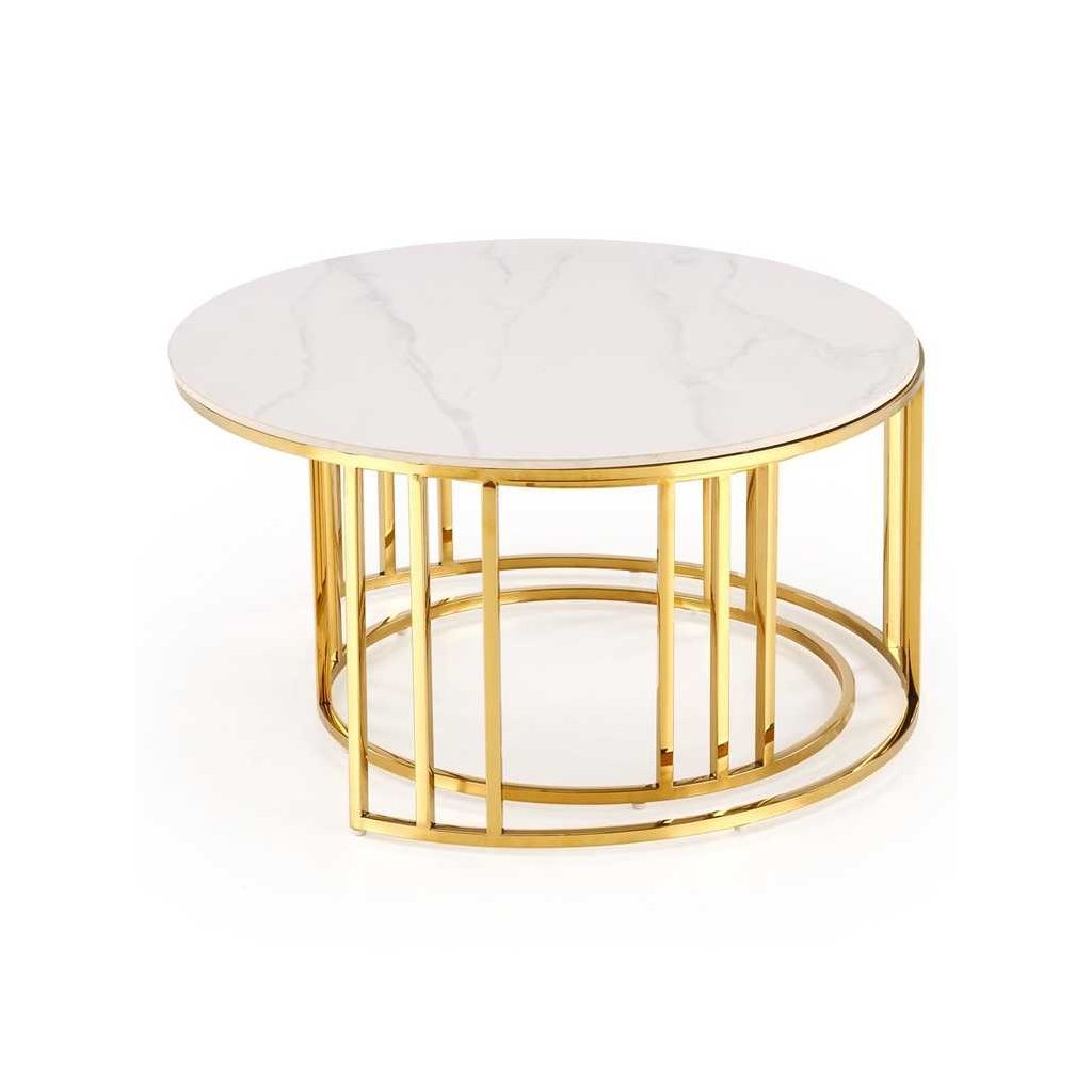 A Mercury dohányzóasztal 3 egy elegáns és praktikus bútor, amely prémium anyaghasználatával és modern dizájnjával emeli otthona hangulatát. Kőből készült felső lappal és fém alapokkal biztosít tartósságot és stabilitást, miközben a kör alakú formatervezése harmóniát és stílust kínál a nappali berendezéséhez. Ez az asztal ideális kiegészítője lehet szinte bármilyen enteriőrnek.