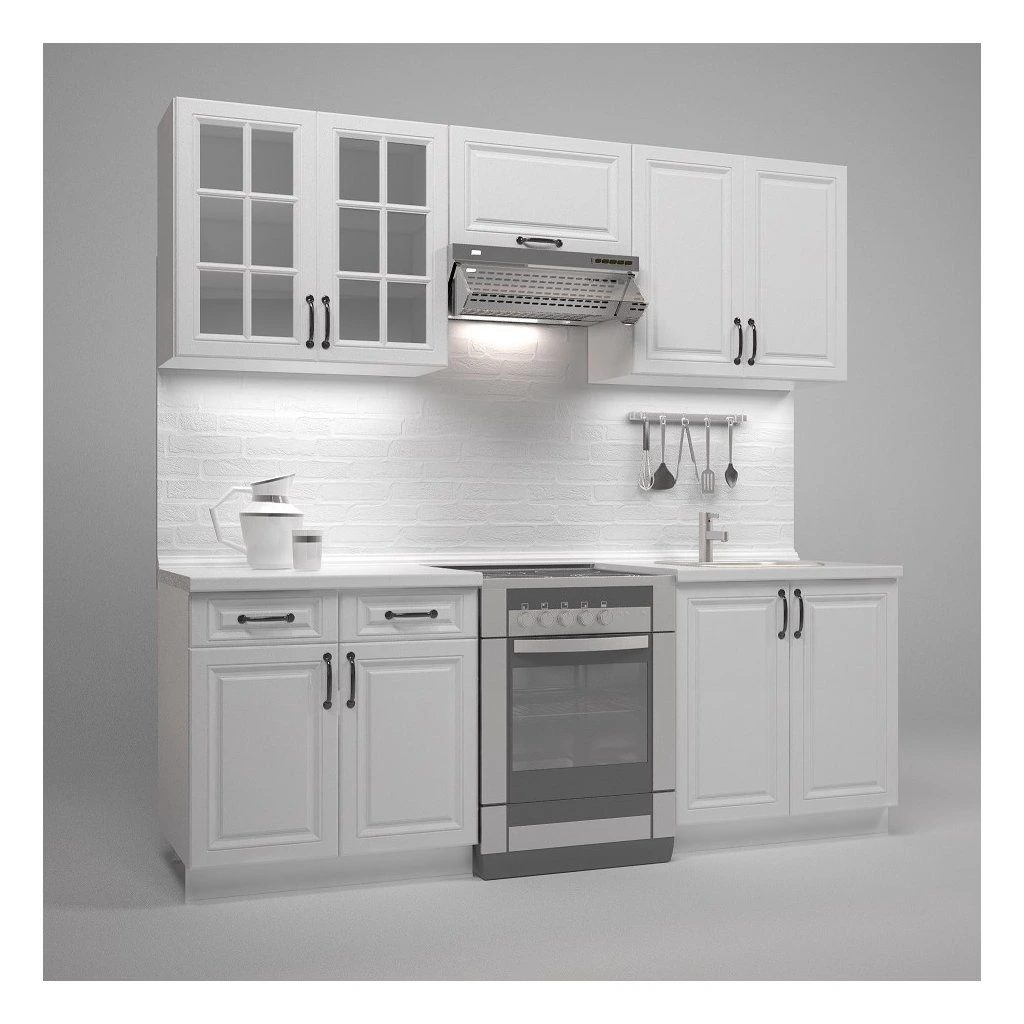 Ez a konyhabútor jól megtervezett, 220 cm-es hosszúságával elegendő helyet kínál a napi főzéshez és tároláshoz. Az összeszerelt bútor stabil, súlya 121,3 kg, amely garantálja a hosszú távú használatot.