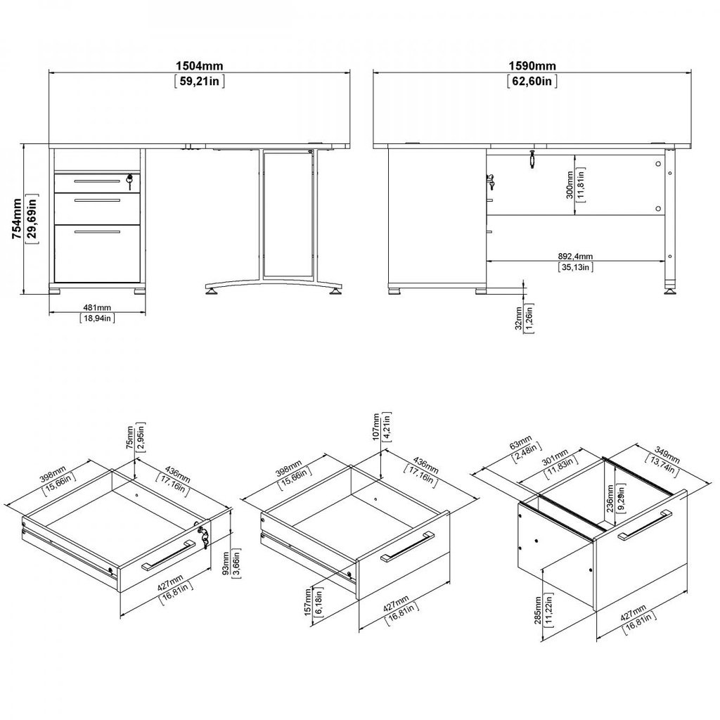 Modulo íróasztallap 159 x 150,5 cm sarok