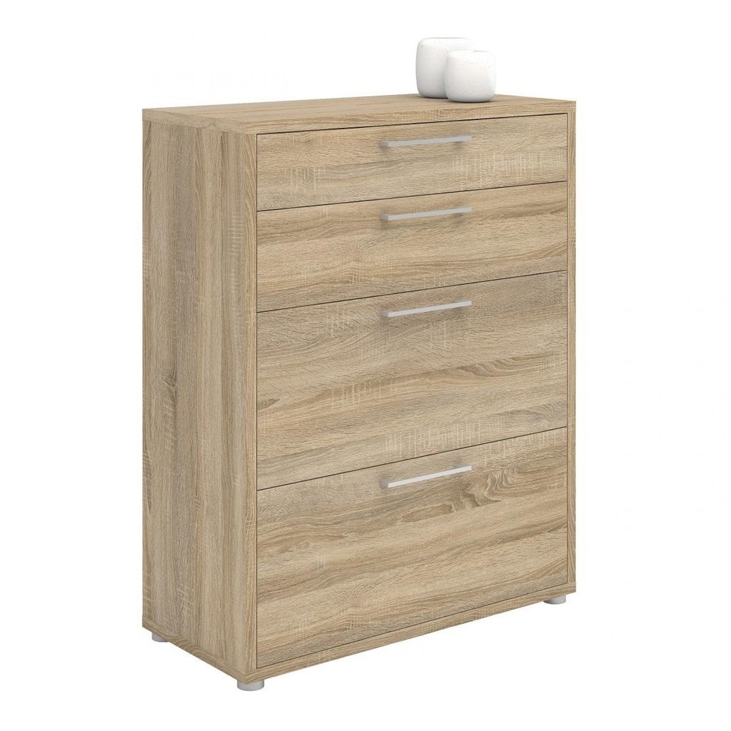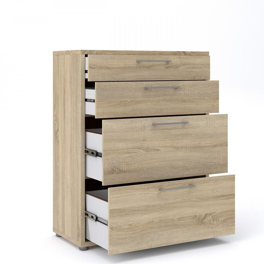 A Modulo szekrény praktikus és sokoldalú tároló megoldást kínál otthoni és irodai környezetbe egyaránt. Négy különböző magasságú fiókja lehetővé teszi a különféle méretű tárgyak, iratok rendszerezett tárolását, míg a kihúzható ajtó könnyű hozzáférést biztosít a belső térhez.