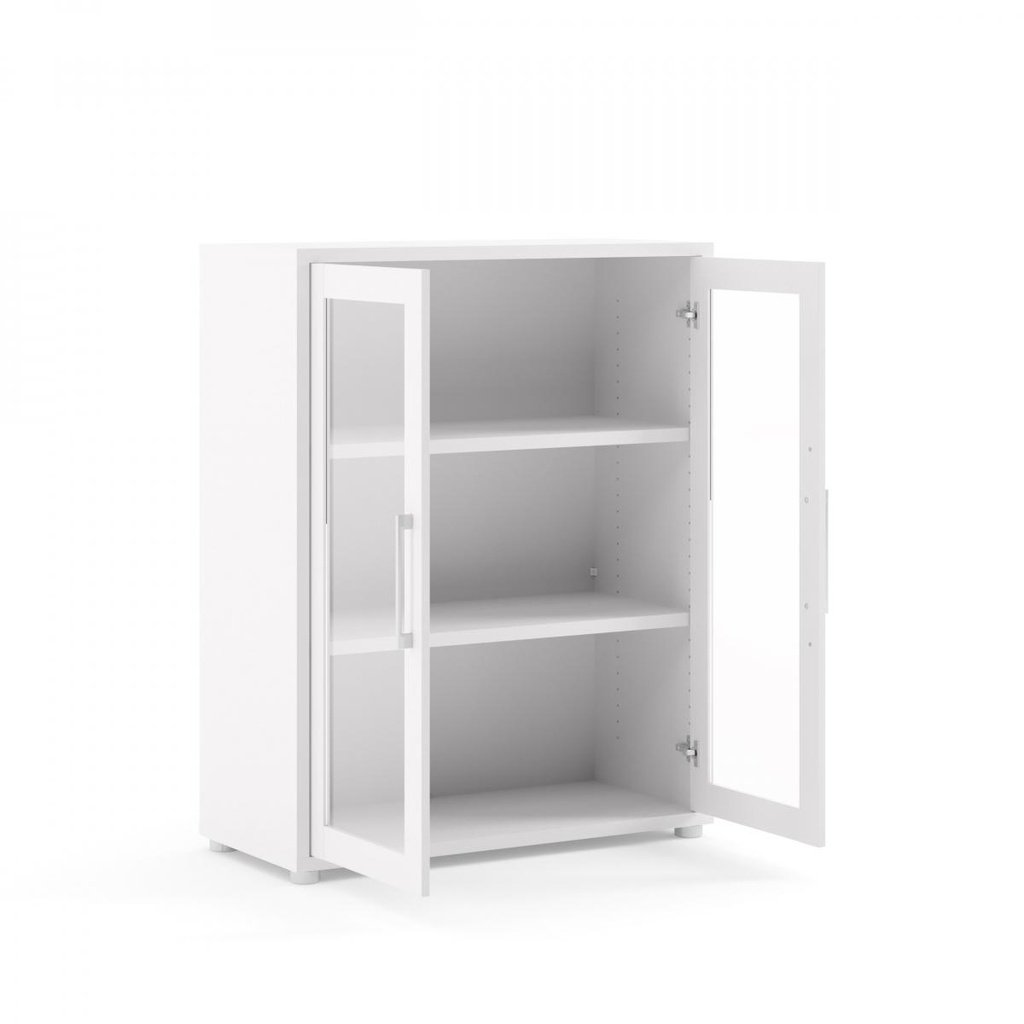 Modulo szekrény 89 x 40 x 113 cm, üveg ajtók, fehér / átlátszó