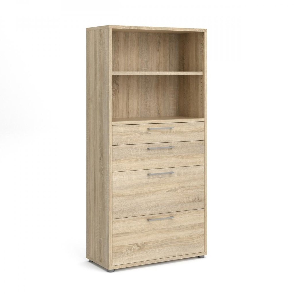 A Modulo szekrény praktikus és rendezett tárolást kínál akár irodai, akár otthoni használatra. A 4 különböző magasságú fióknak köszönhetően könnyedén rendszerezheti iratait, személyes tárgyait vagy egyéb eszközeit. A két polccal ellátott, nyitott rekesz további helyet biztosít könyvek vagy dekoráció számára.