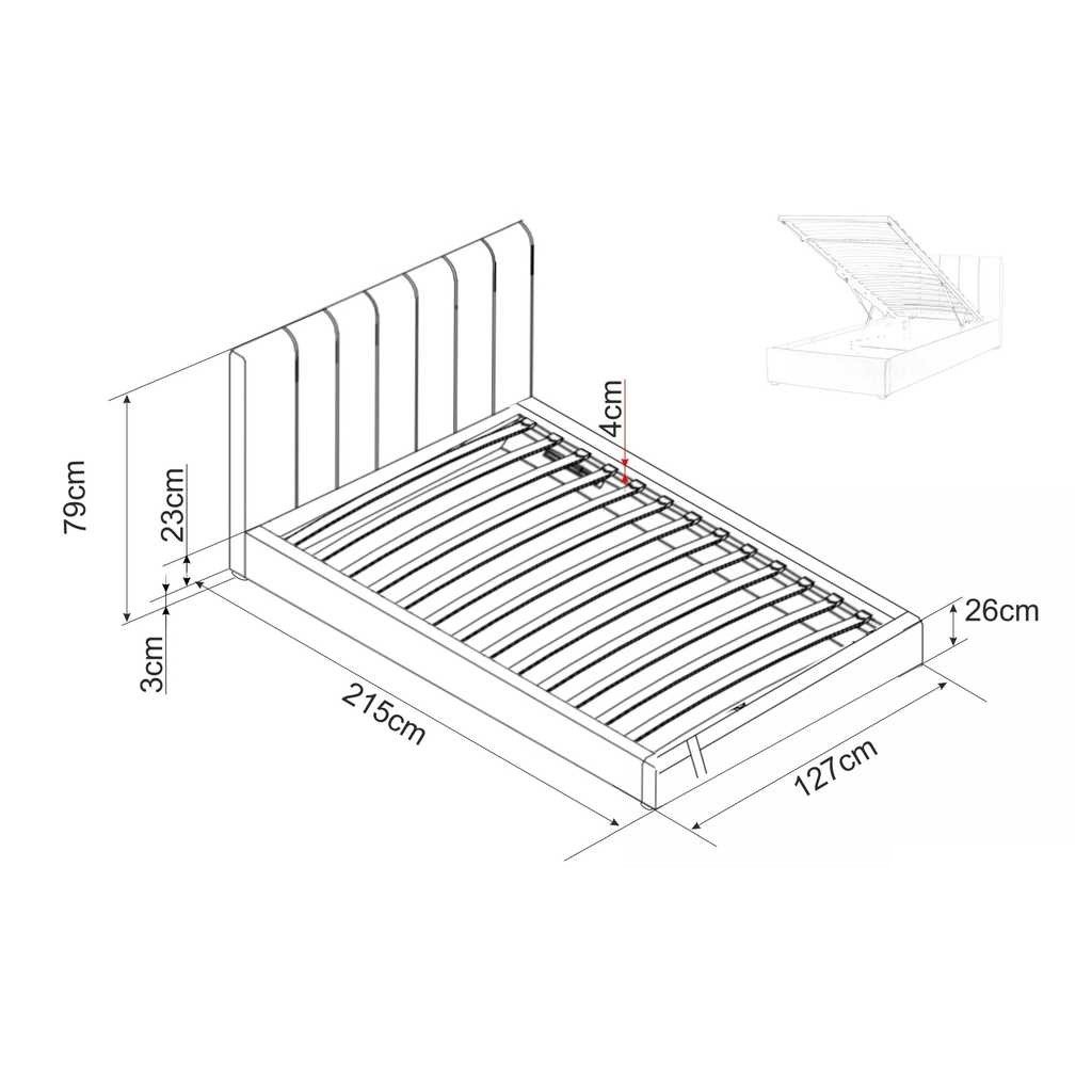 - Méretek: 120 x 200 cm fekvőfelület, 215 cm hossz, 127 cm mélység