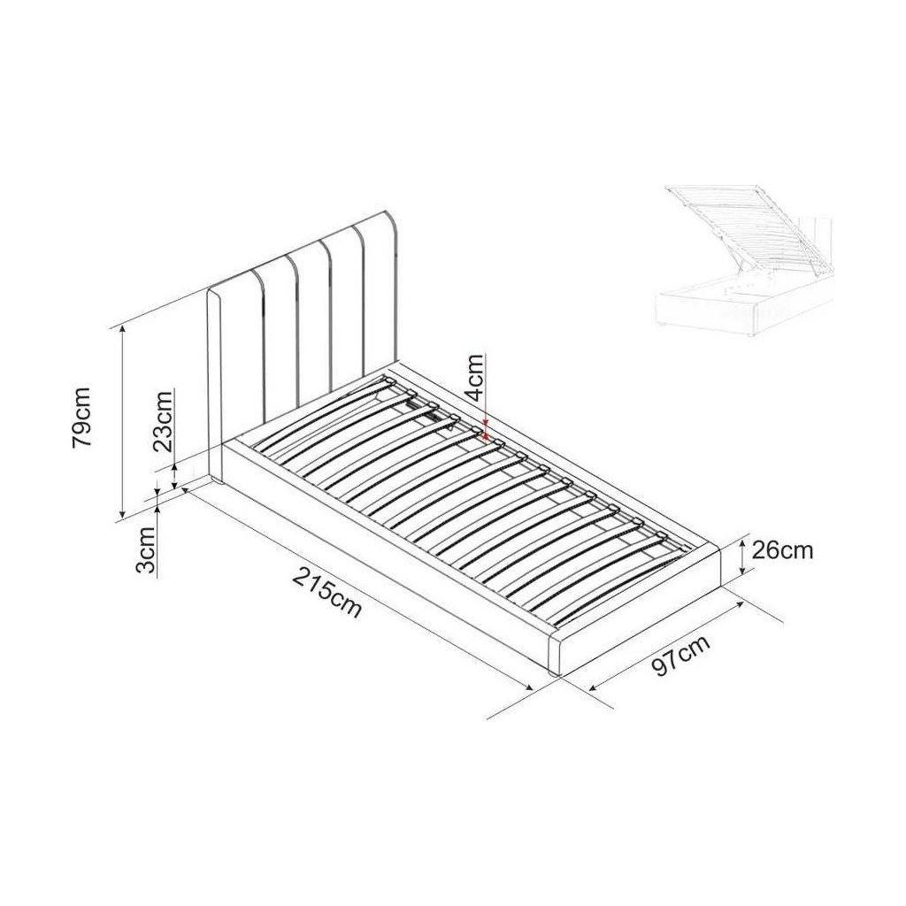 Az ágy nem csupán kényelmes fekvőhelyet kínál, hanem praktikus tárolórekesszel is rendelkezik, hogy könnyedén elrejthesse a takarókat, párnákat vagy egyéb tárgyait. Ideális mérete 90 x 200 cm, amely elegendő teret biztosít egy pihentető alváshoz.
