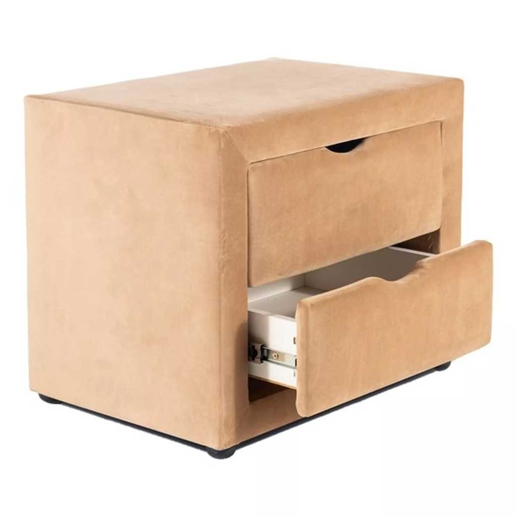 A Mullido II éjjeliszekrény ideális választás azoknak, akik praktikus és esztétikus tároló megoldást keresnek hálószobájukba. Tartós fa vázzal és magas minőségű szövet, bársony kárpitozással készült, ami egyedülálló puhaságot és eleganciát kölcsönöz a bútornak. Két tágas fiókja kényelmes tárolórekeszként szolgál apró személyes tárgyaknak vagy könyveknek.