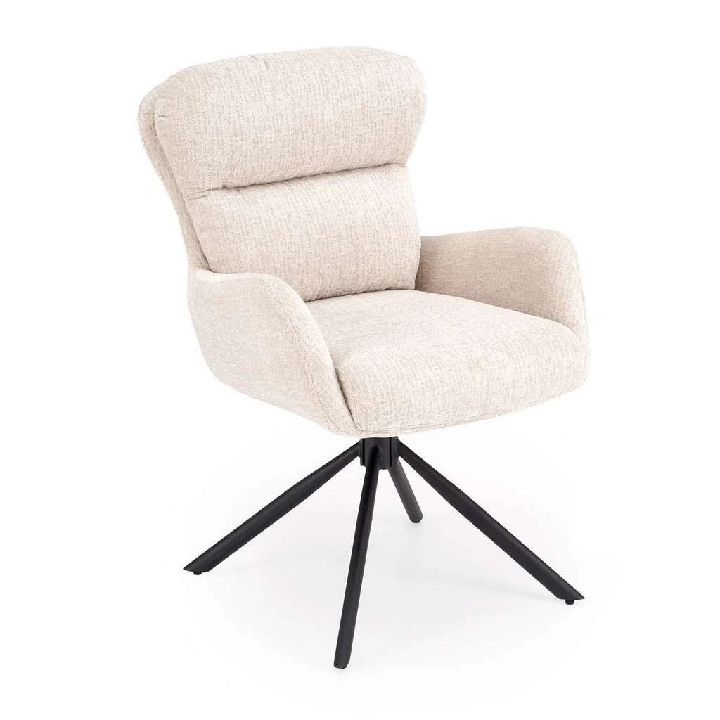A Myrtia étkezőszék ideális választás azoknak, akik kedvelik a letisztult, modern formákat és a funkcionalitást egyaránt. A szövet ülőfelület kényelmes és kellemes tapintású, míg a forgó láb lehetővé teszi az egyszerű mozgást anélkül, hogy fel kellene állni. A fém alap biztosítja a stabilitást és tartósságot, így akár 120 kg súlyt is biztonságosan elbír.