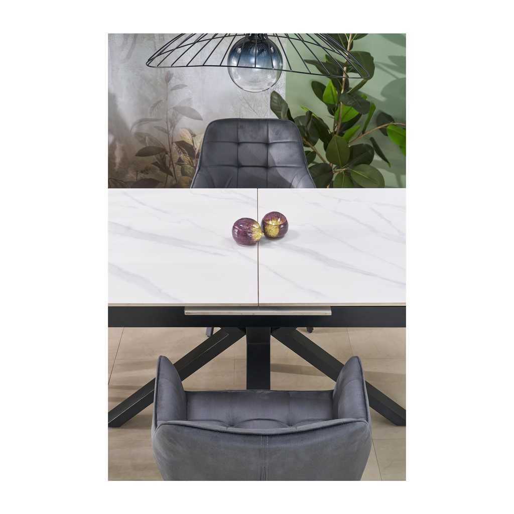 A Newark étkezőasztal egyszerre modern és funkcionális megoldás minden étkezőbe. Kiváló minőségű kőből készült asztallappal rendelkezik, amely ellenálló és könnyen tisztítható, így tartósságot és praktikumot biztosít. Az erős fém alap stabilitást nyújt, hogy az asztal huzamosabb használat mellett is megbízható maradjon. Bővíthető kialakításának köszönhetően akár 6 fő is kényelmesen elfér körülötte.