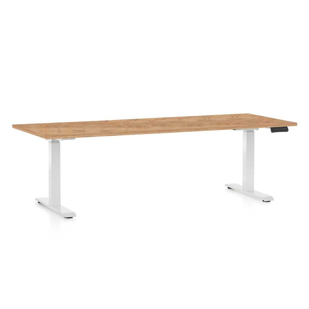 Kiemelkedő teherbírásával akár 100 kg súlyt is elbír, biztonsági ütközésgátló rendszerrel, továbbá 10 év garanciával rendelkezik, ami garantálja a hosszú távú megbízhatóságot. A 25 mm vastag asztallap masszív és tartós, a vezérlőegység pedig gombokkal és mentett előbeállításokkal segíti a munkavégzést.