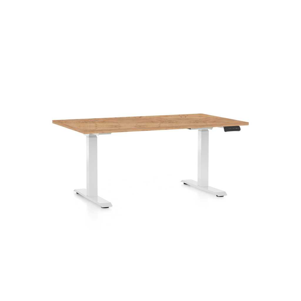 OfficeTech D állítható magasságú asztal, 140 x 80 cm, fehér alap, craft tölgy
