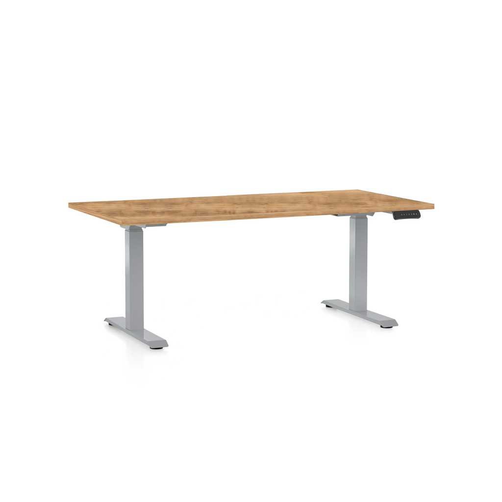 OfficeTech D állítható magasságú asztal, 160 x 80 cm, szürke alap, arany tölgy