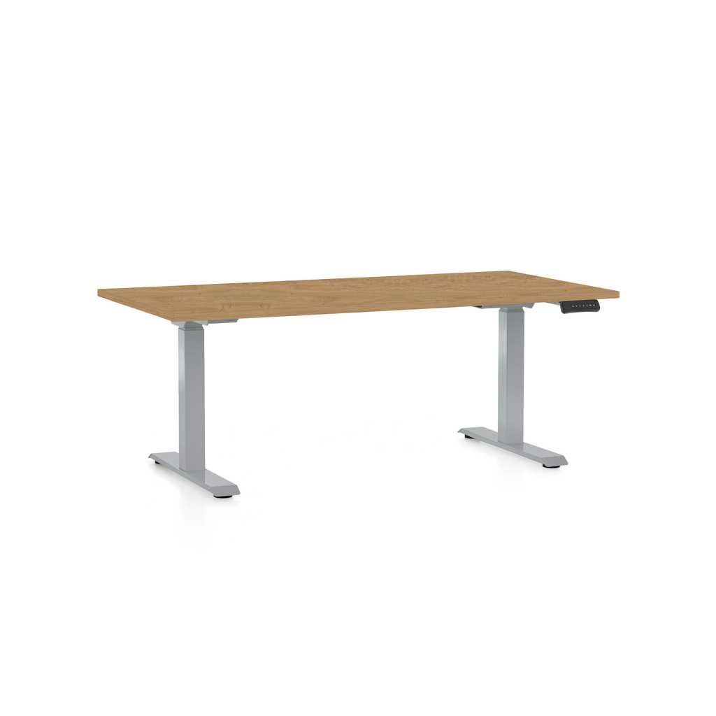 OfficeTech D állítható magasságú asztal, 160 x 80 cm, szürke alap, köves tölgy