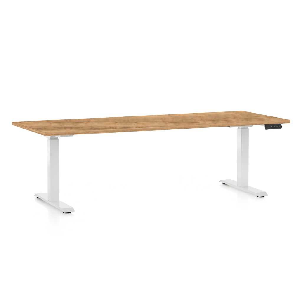 OfficeTech D állítható magasságú asztal, 200 x 80 cm, fehér alap, arany tölgy