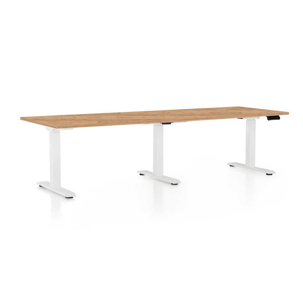 OfficeTech Long állítható magasságú asztal, 240 x 80 cm, fehér alap, craft tölgy