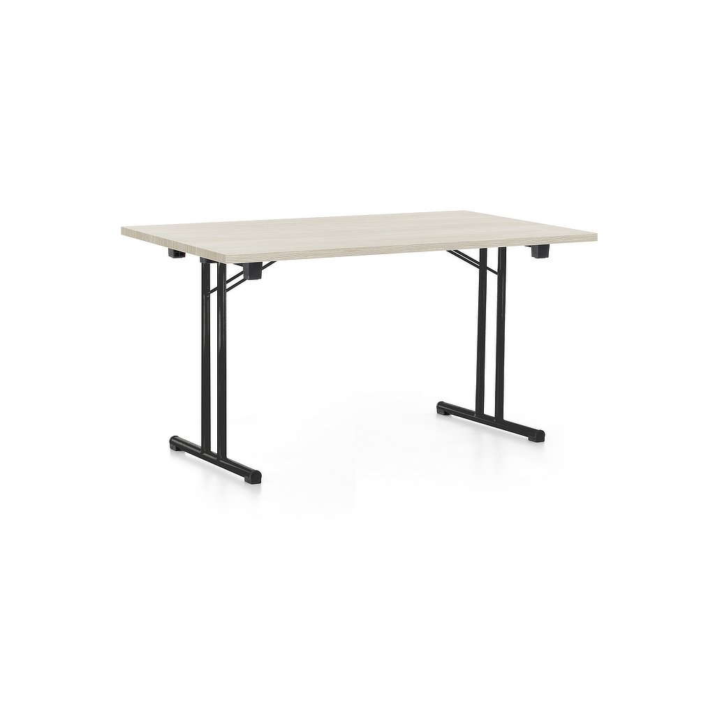 Összecsukható asztal 140 x 80 cm, fekete lábak, fehér kőris