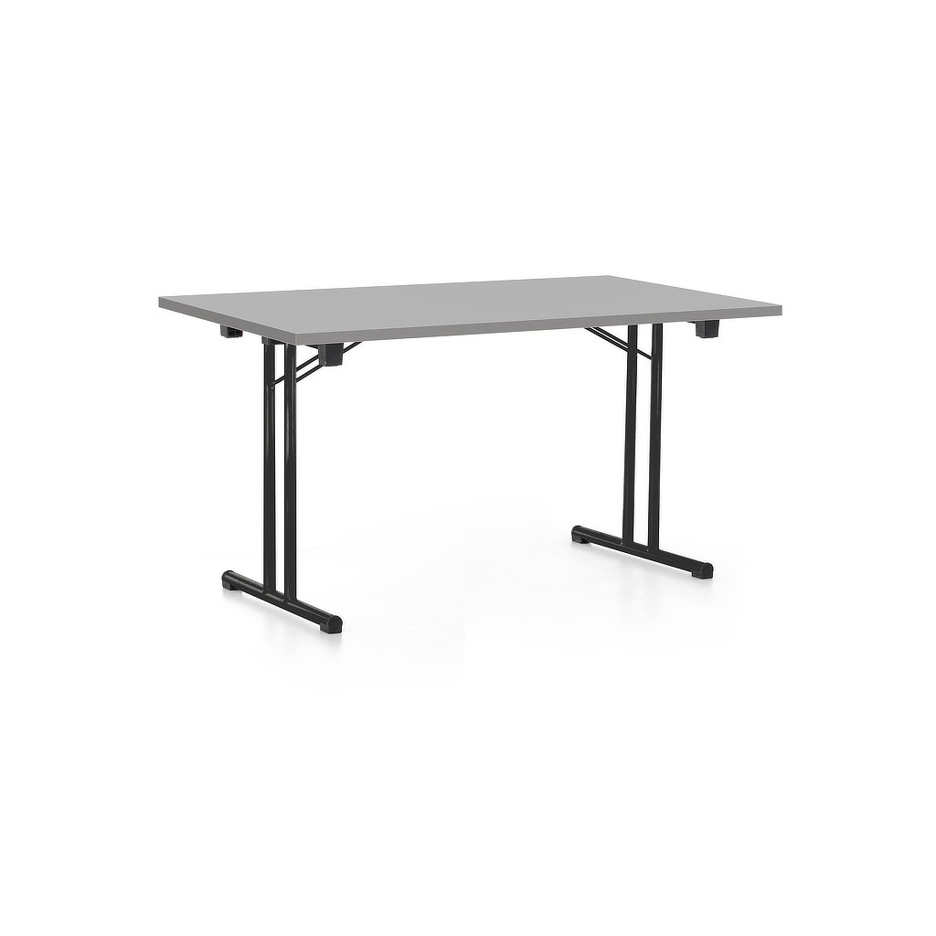Összecsukható asztal 140 x 80 cm, fekete lábak, világos szürke