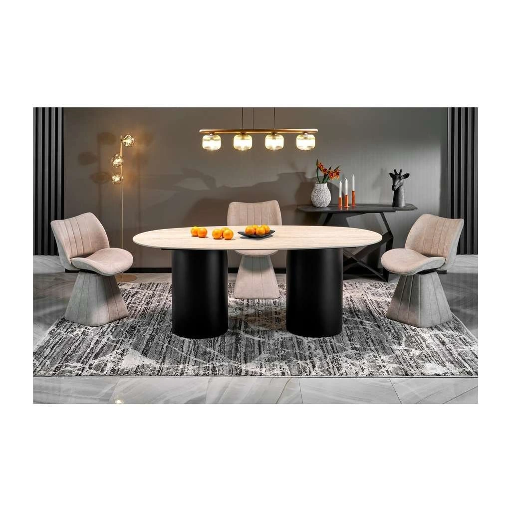 A Palairos étkezőasztal egy időtálló, elegáns darab, amely egyedi ellipszis formájával emeli a tér hangulatát. A kő asztallap nem csak különleges megjelenést biztosít, hanem tartósságával és stabilitásával is kiemelkedik. A fém alap szilárdságot és modern stílust biztosít az asztalnak, amely akár 7 fő kényelmes étkezését is lehetővé teszi.