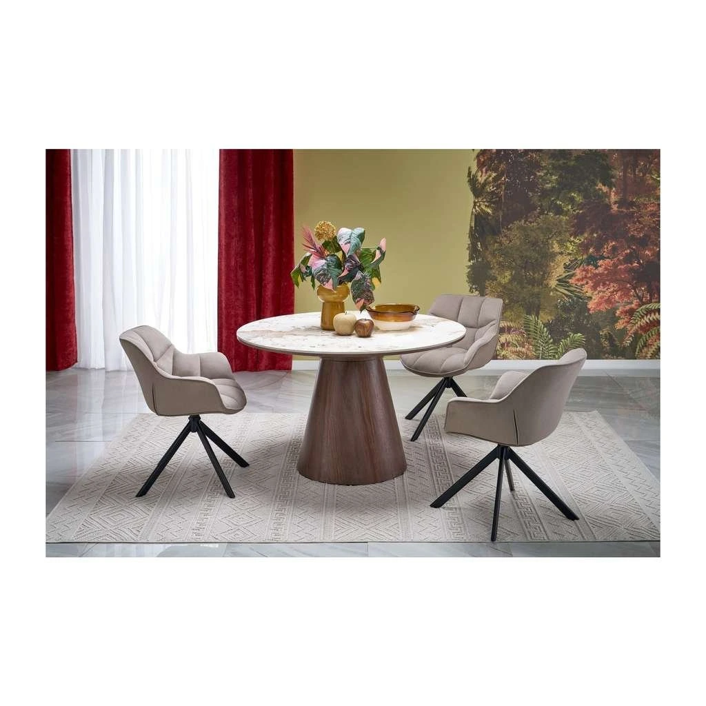 A kör alakú forma nemcsak esztétikus, hanem praktikus is, hiszen így akár 6 személy is kényelmesen körülülheti az asztalt, elősegítve a közös étkezések és beszélgetések meghitt hangulatát. Az asztal nem bővíthető, amely ideálissá teszi kisebb és közepes méretű étkezőhelyiségekbe.