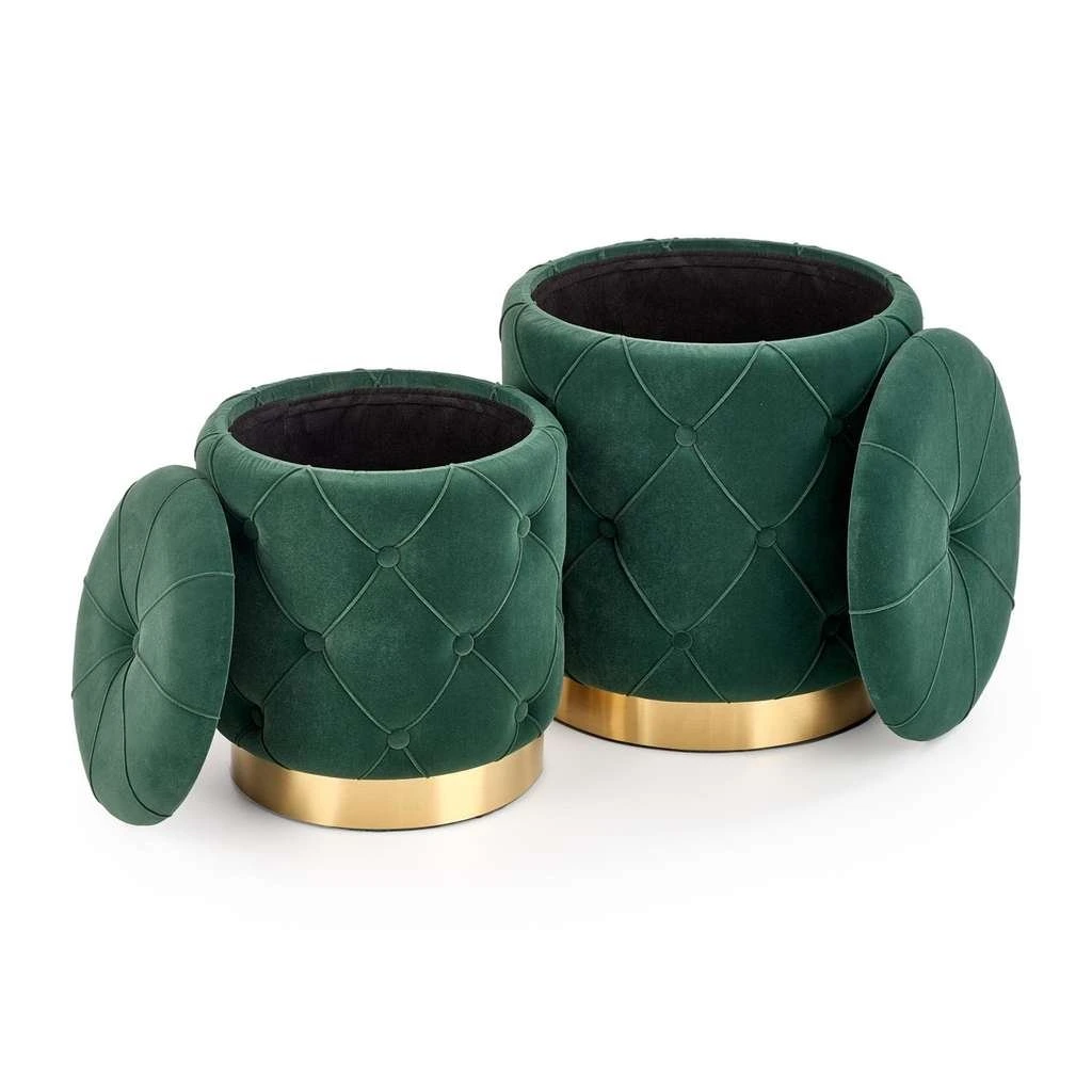 A Polly zsámoly szett tökéletes választás otthoni vagy akár vendégtéri használatra, ahol stílusos és praktikus bútorra van szükség. A két különböző méretű zsámoly kiváló ülőhelyet biztosít, miközben a tetejük felnyitható, így rejtett tárolóhelyet kínálnak kisebb tárgyaknak.