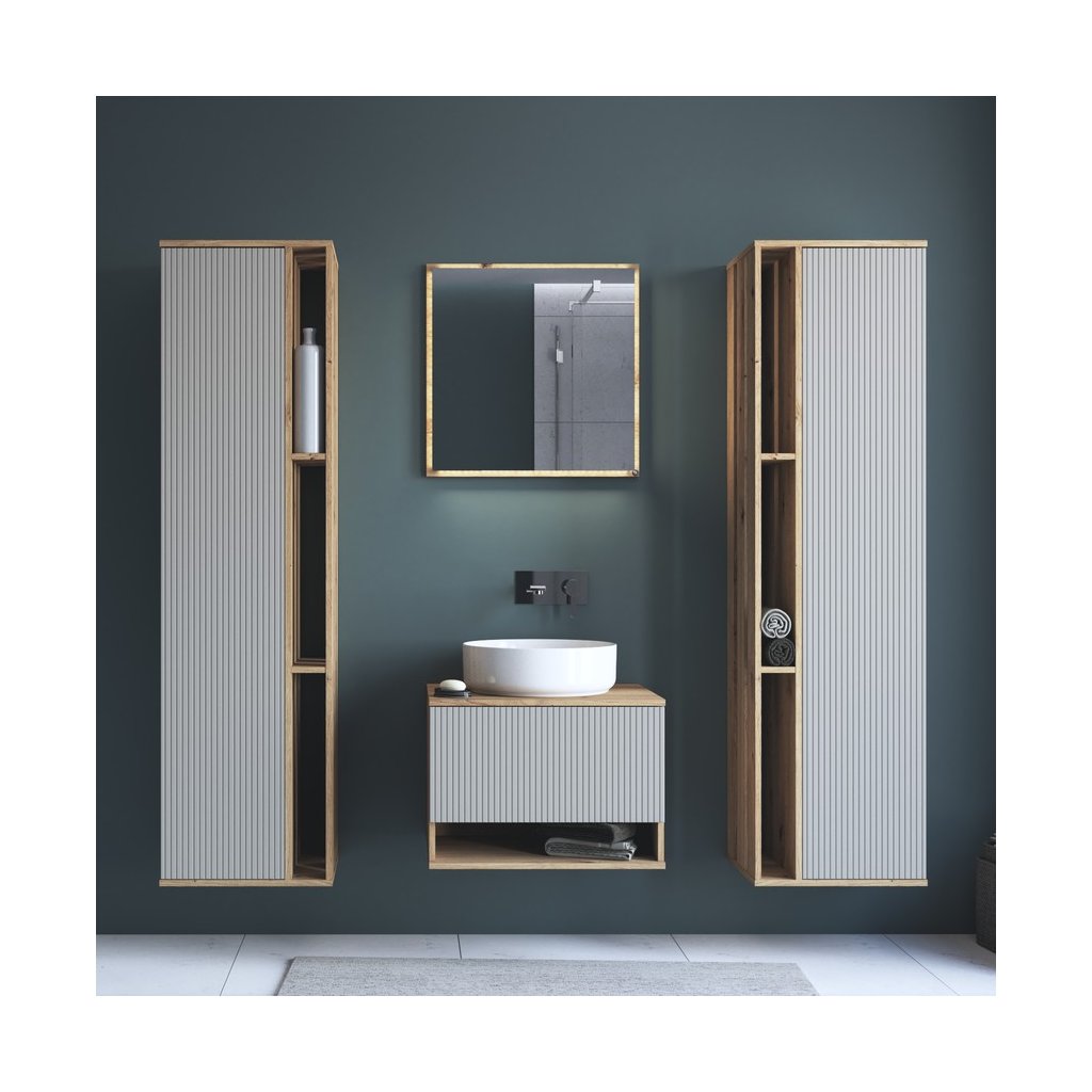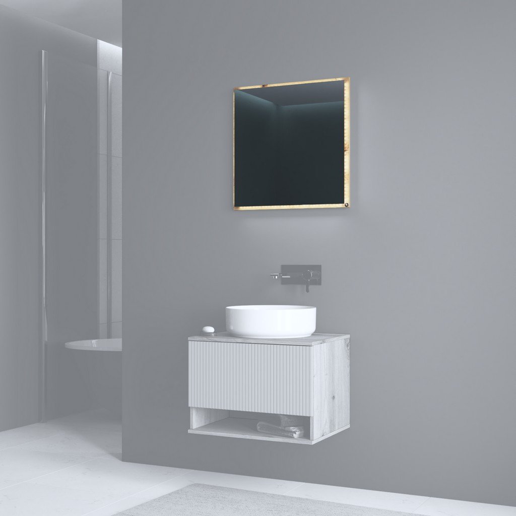 Ez a Pulcro fali tükör elegáns és praktikus kiegészítője lehet otthonának vagy irodájának. 60 cm szélességével és magasságával ideális méretet kínál a mindennapi használathoz, miközben a fa váz stabil és tartós keretet biztosít a tükör számára. A LED világítás kényelmes megvilágítást nyújt anélkül, hogy sok helyet foglalna el. 5 év garanciával, hosszú távon megbízható választás.