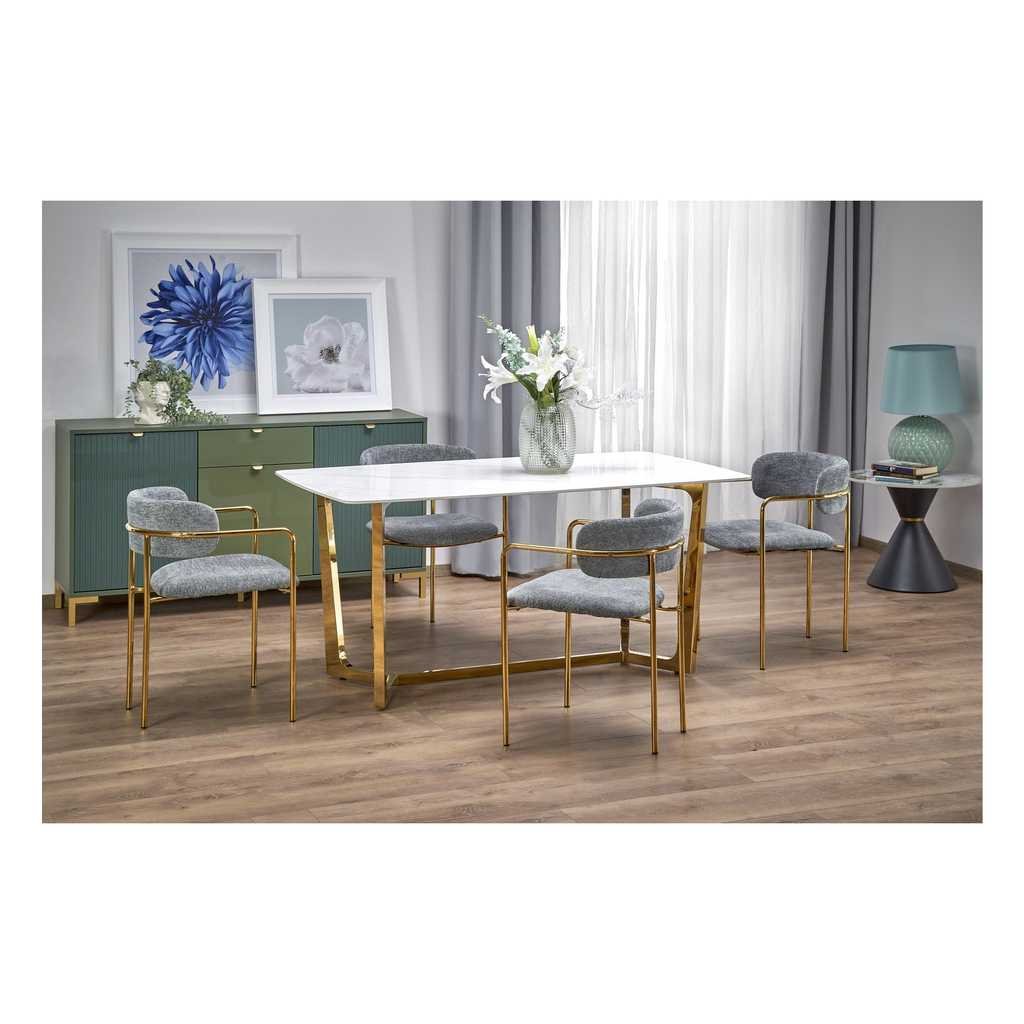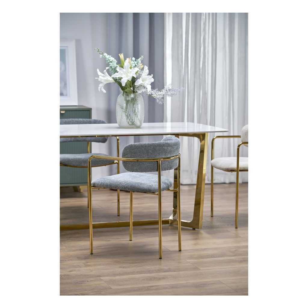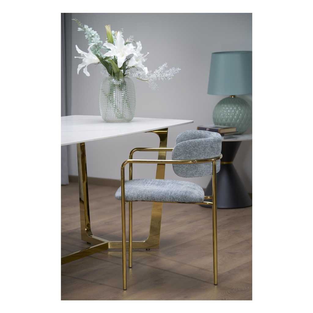 A Quinn étkezőszék egy modern és kényelmes darab, amely ideális választás lehet minden étkezőbe. Masszív fém vázzal rendelkezik, amely biztosítja a tartósságot és stabilitást, miközben a puha szövet ülőfelület extra kényelmet nyújt a mindennapi használat során. A széket úgy tervezték, hogy akár 100 kg terhelést is elbírjon, így megbízható társ lehet a családi vagy baráti összejöveteleken.