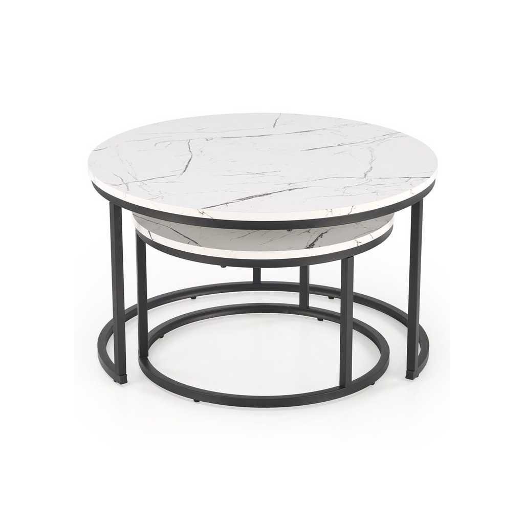 A River dohányzóasztal modern megjelenésével és praktikus kialakításával ideális választás nappalijába. A kör alakú asztallap fa anyaga és a fém alap garantálja a stabilitást és tartósságot, melyet egy 5 éves garancia is megerősít. Méreteiben (79 cm hosszúság és mélység, 47 cm magasság) tökéletesen illeszkedik különféle enteriőrökbe, miközben nem foglal nagy helyet.