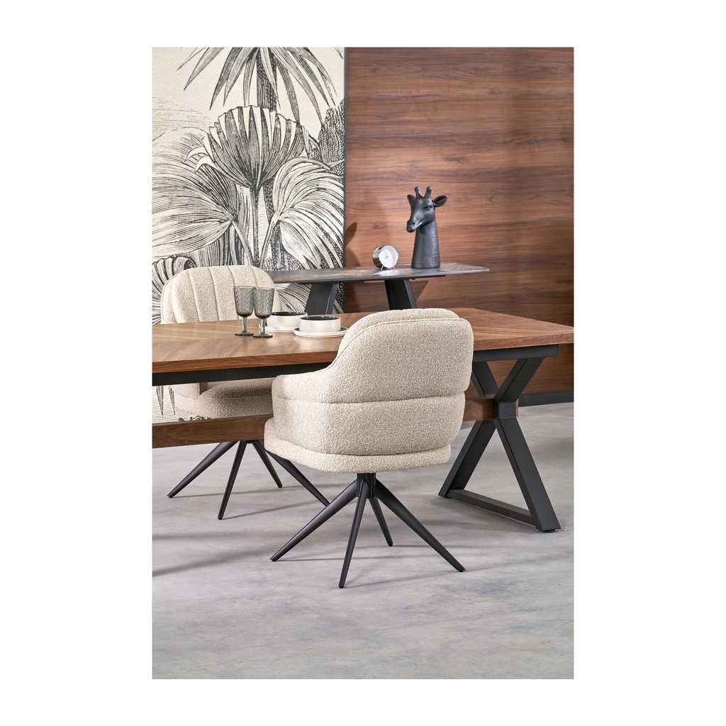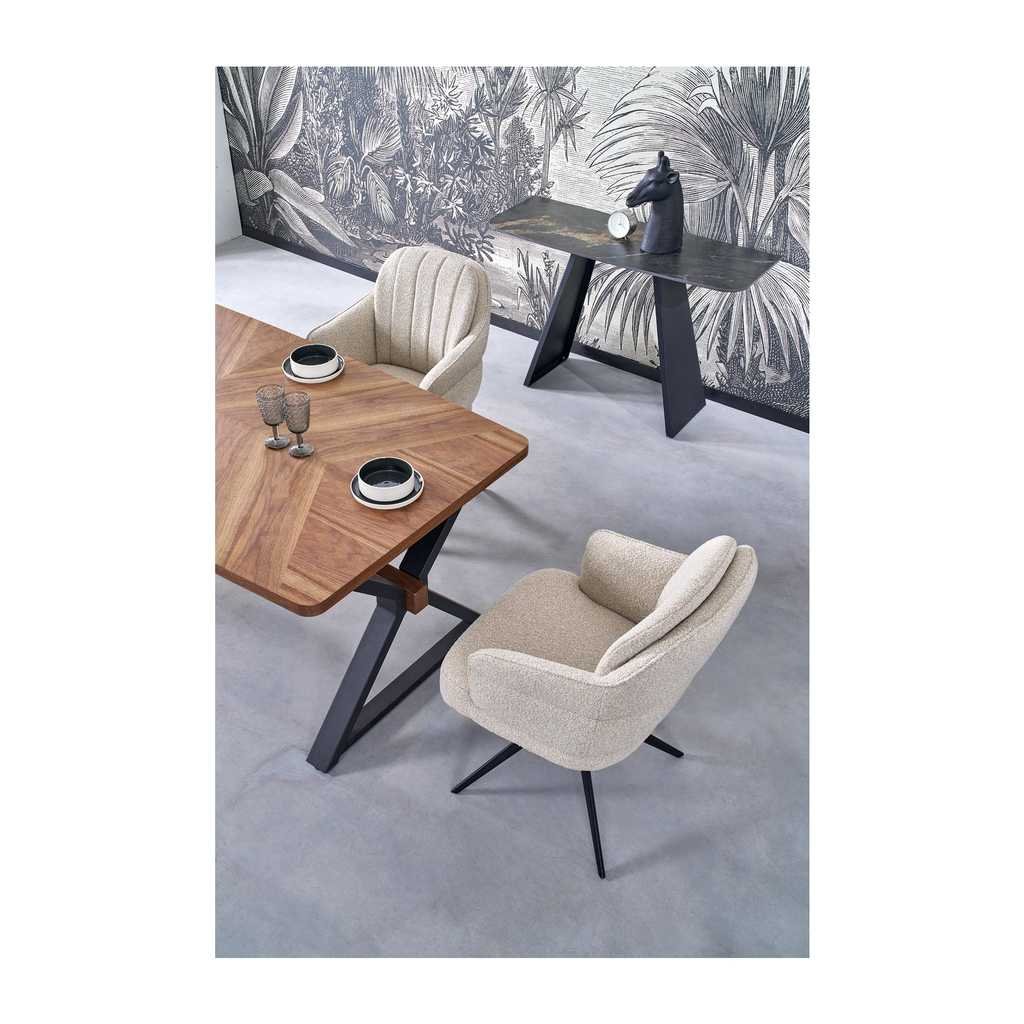A Rowley étkezőszék kiváló választás azoknak, akik stílusos és kényelmes ülőalkalmatosságot keresnek étkezőjükbe. Szövet borításának köszönhetően kellemes tapintású, míg a masszív fém alap biztosítja a stabilitást és tartósságot. A karfás kialakítás támogatja a kényelmes ülőhelyzetet hosszabb étkezések vagy beszélgetések során.