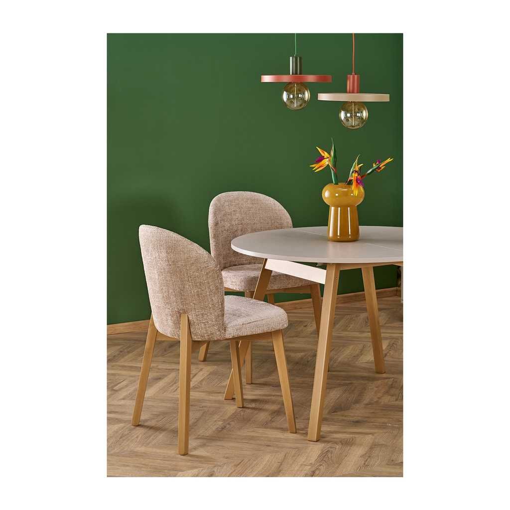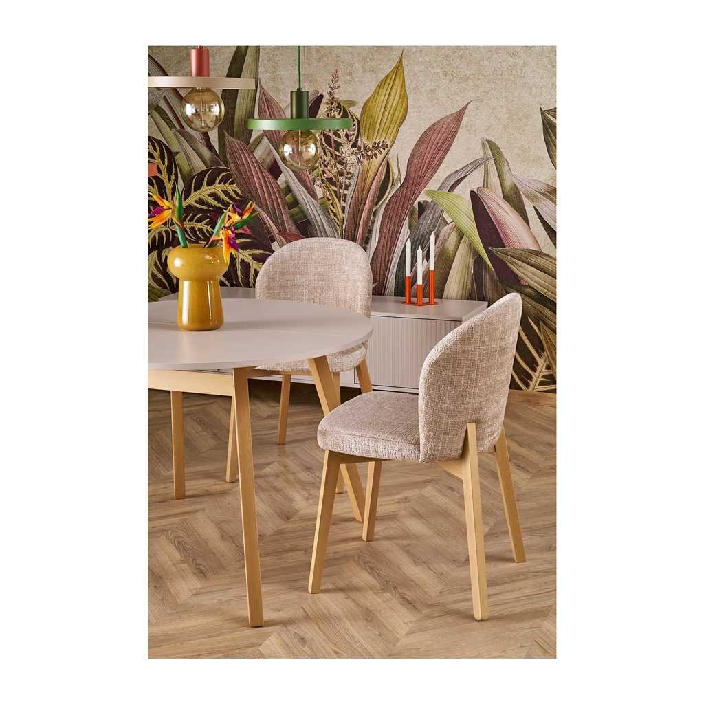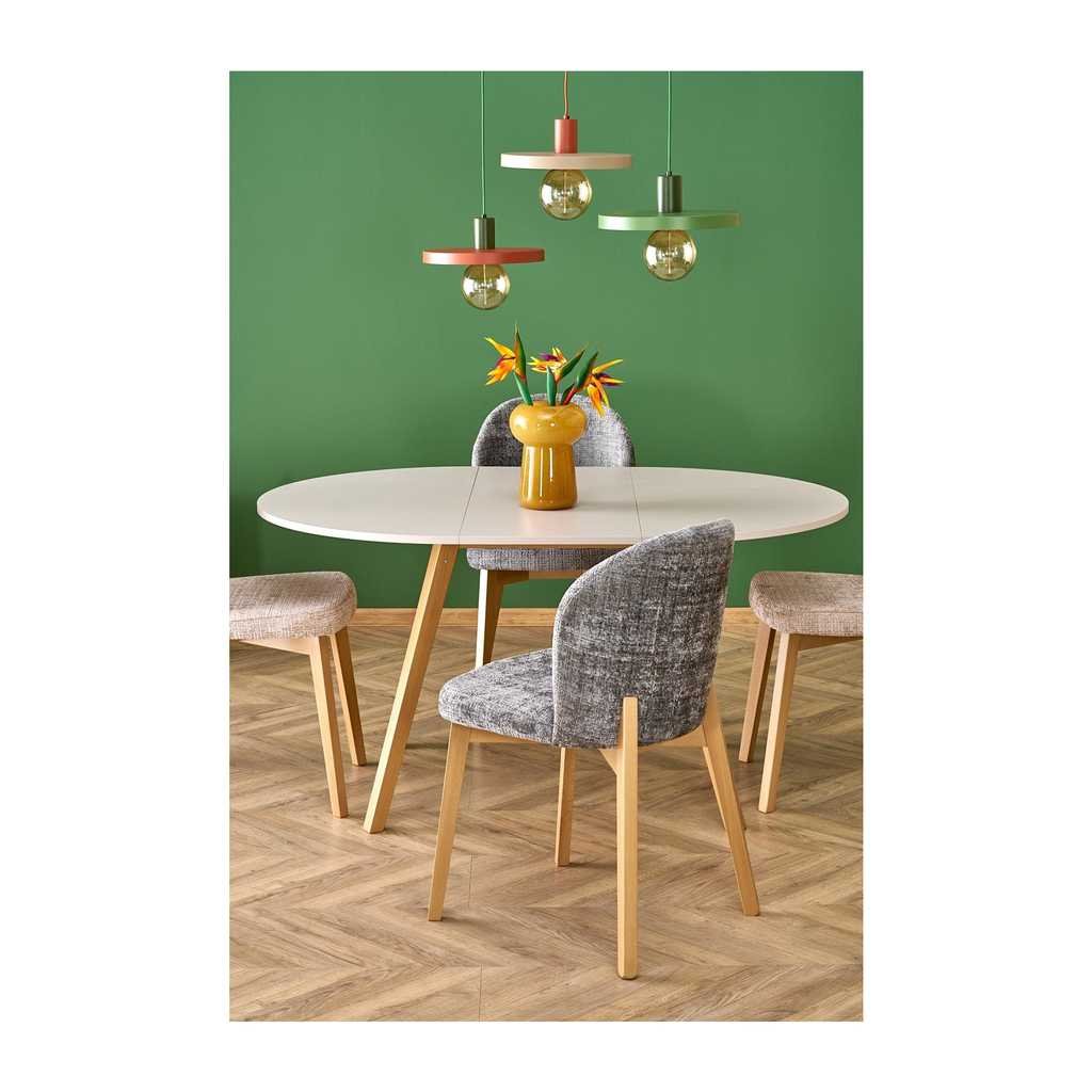 A Ruben étkezőasztal időtlen dizájnt és funkcionalitást kínál otthonodba. Ez a kör alakú, fa anyagú asztal tökéletes választás a mindennapi étkezésekhez, de alkalmas nagyobb családi vagy baráti összejövetelekhez is, köszönhetően bővíthető kialakításának. Alapmérete kompakt, így kisebb helyiségekbe is ideális, de könnyedén növelhető, hogy akár 6 személy kényelmesen elférjen körülötte.