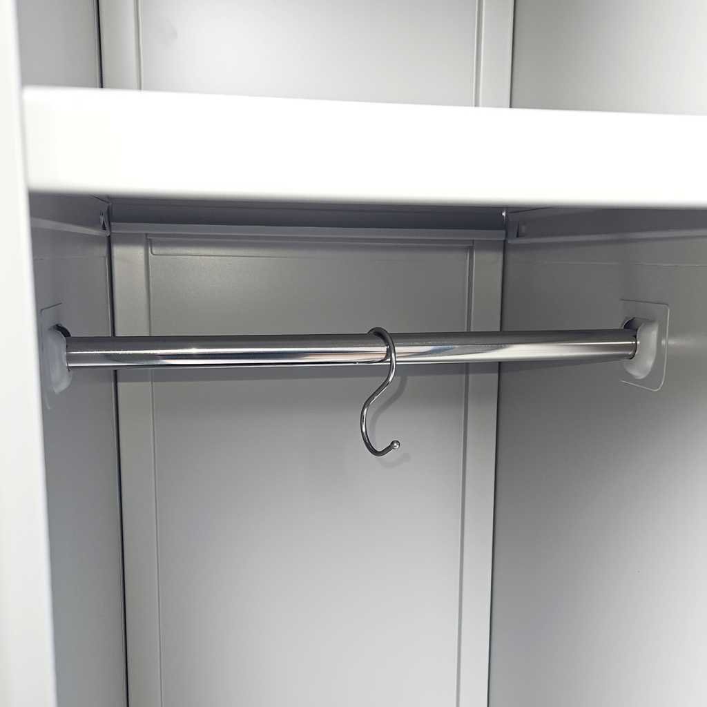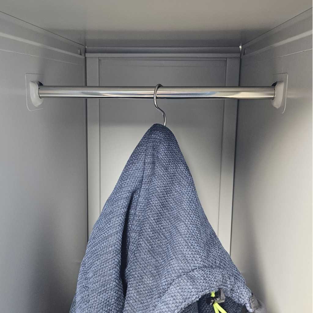 Ez a ruhásszekrény kampó praktikus és tartós megoldás a ruhák, táskák vagy egyéb kiegészítők rendezetten történő tárolására. Kompakt méretének köszönhetően könnyen elfér szinte bármilyen szekrényben vagy tárolóhelyen, így hatékonyan növeli a hely kihasználtságát.