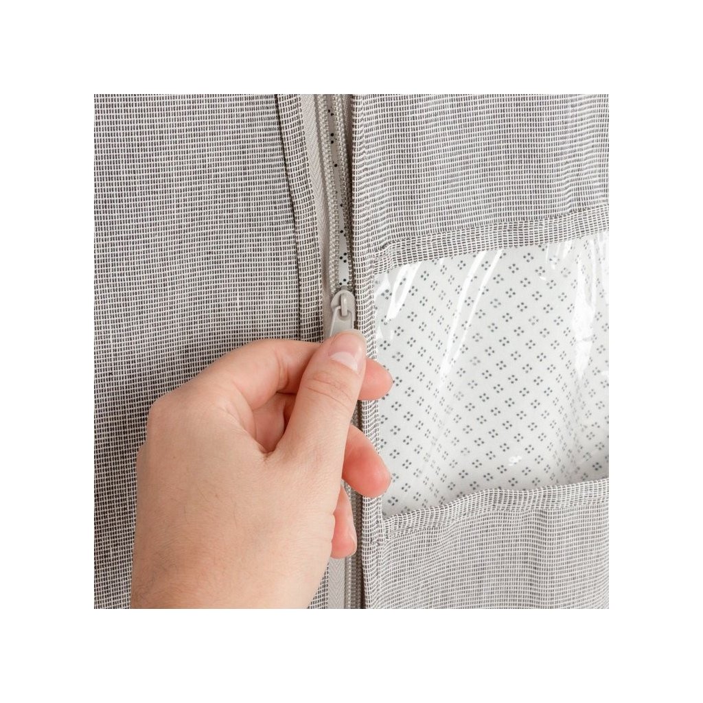 A tárolótáska nem engedi, hogy a nedvesség, az atkák vagy az molyok sérüljenek a ruházatod. Lehetővé teszi a ruhák fogason történő tárolását és szállítását. Csak tedd be a vállfát kedvenc kabátoddal vagy hosszú ruháddal a csomagba, zárd le cipzárral és védettek. Az átlátszó ablaknak köszönhetően mindig áttekintést kap arról, hogy mit rejt a csomagolás.