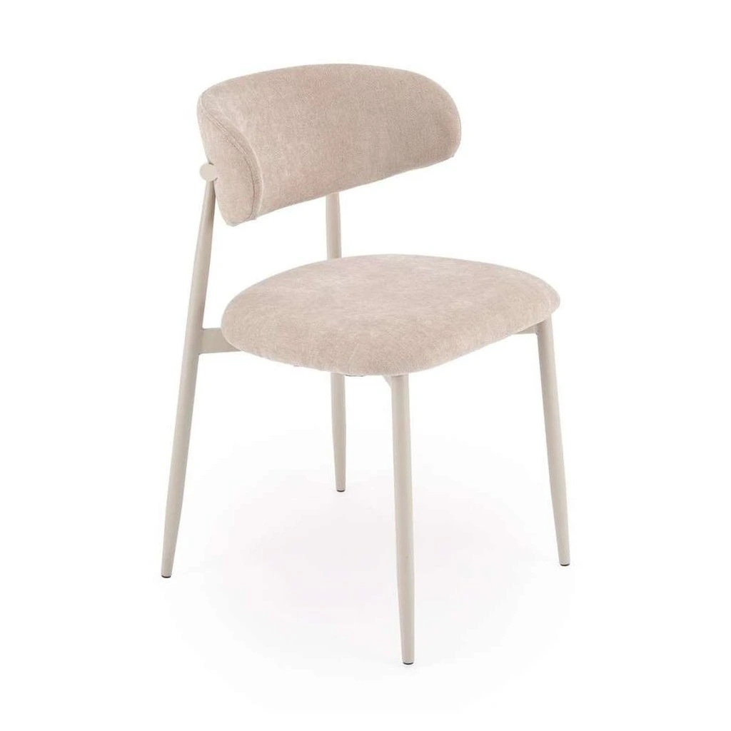 A fém váz stabilitást és hosszú élettartamot garantál, míg a puha szövet ülőfelület kényelmes ülést biztosít akár hosszabb étkezések alatt is. A háttámla megfelelő alátámasztást nyújt, miközben a könnyed kialakítás légies megjelenést kölcsönöz az ülőbútor számára.