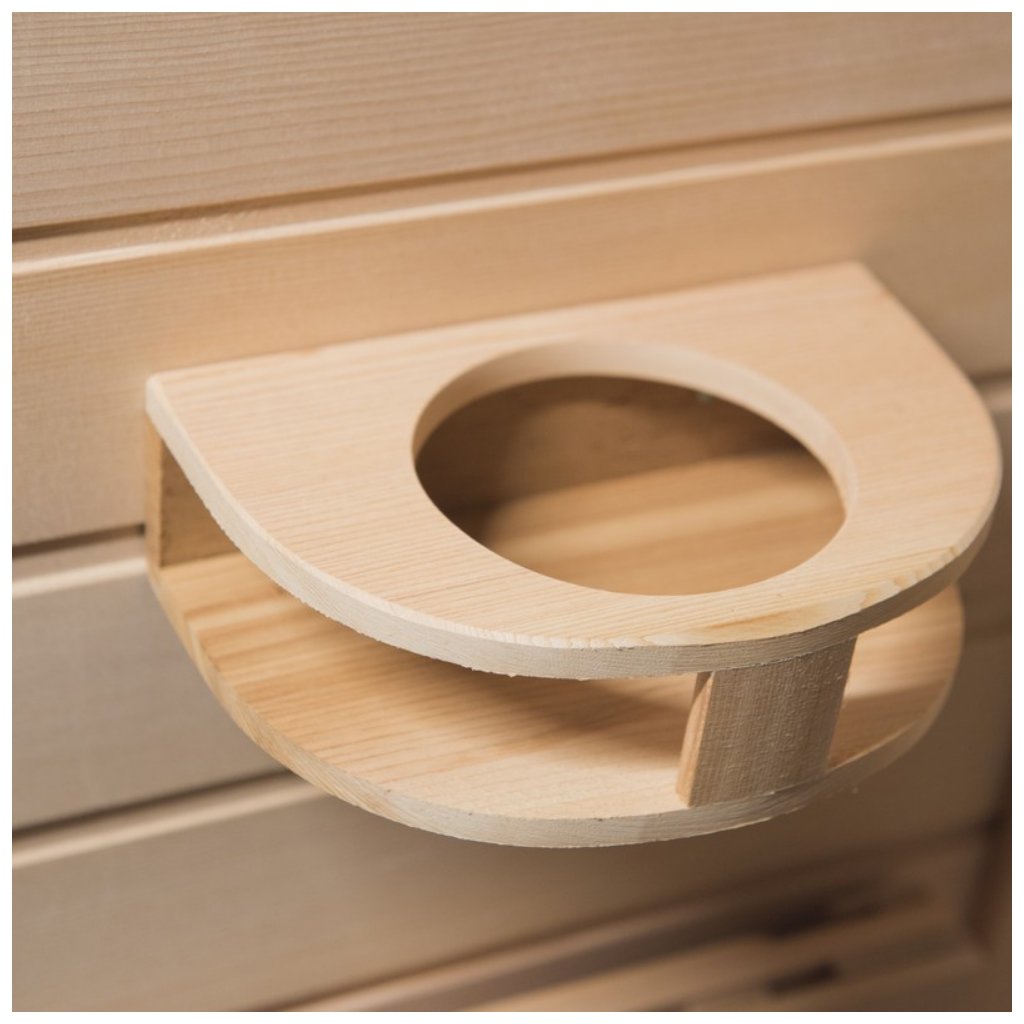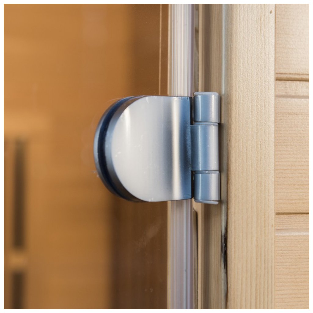 Egy apróság 2 polc formájában italok számára feldobja a tartózkodást. a szauna sokkal kellemesebb. Így nem kell állandóan arra gondolnia, hogy véletlenül kiöntheti az italát. Edzett üvegből készült biztonsági ajtó van beépítve. A hő biztosan nem távozik rajtuk.
