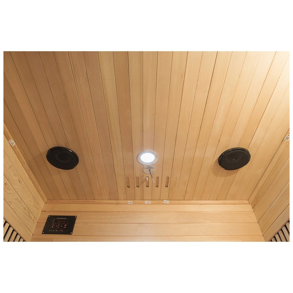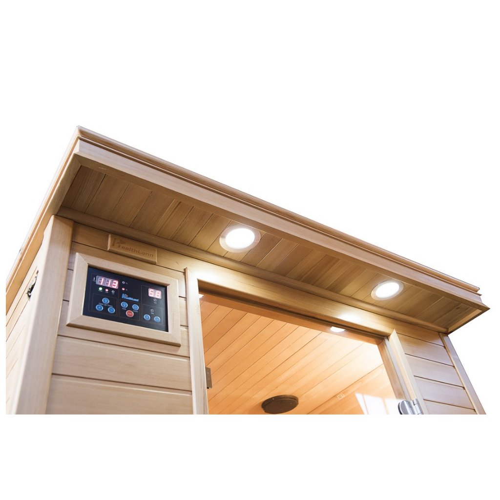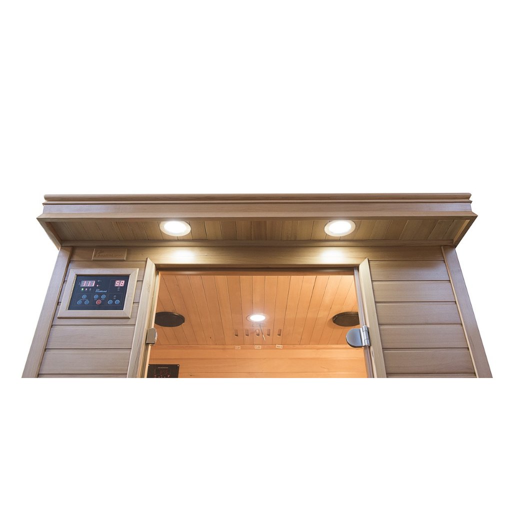 További előnyök közé tartozik a belső LED világítás, amely nem zavarja Önt a sugárzás intenzitása, miközben energiát takarít meg. A beépítetthőmérséklet-érzékelőnek köszönhetően pontos áttekintése lesz a szauna melegéről.
