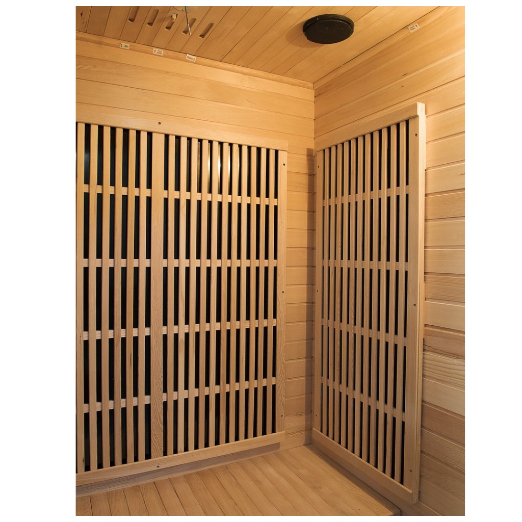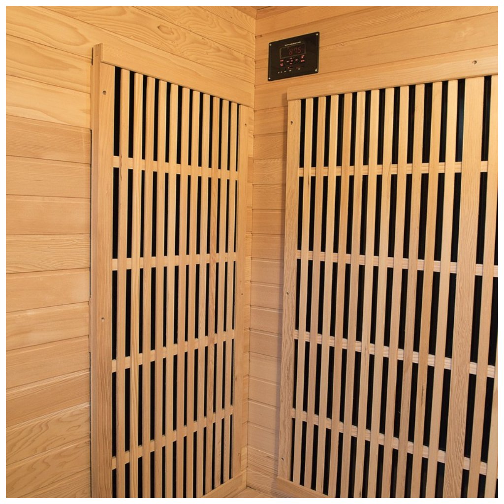 A szaunában van egy 8 szénradiátorból készült fűtőelem, amely infravörös sugárzást hoz létre. Ugyanezt az energiát állítja elő az emberi szervezet is, tehát ezteljesen biztonságos. A beltéri és kültéri digitális panel segítségével beállíthatja a kívánt hőmérsékletet, és nem kell más miatt aggódnia.