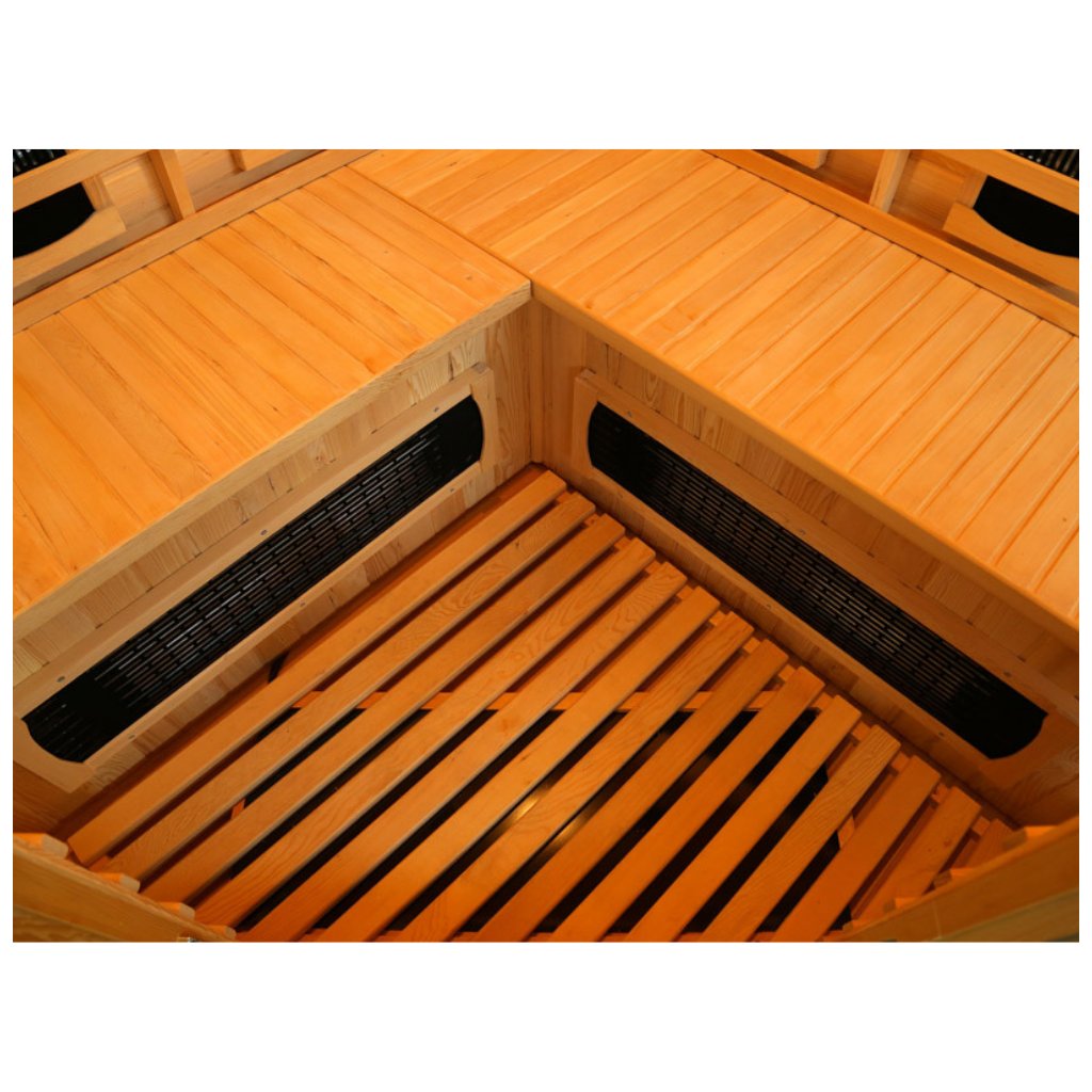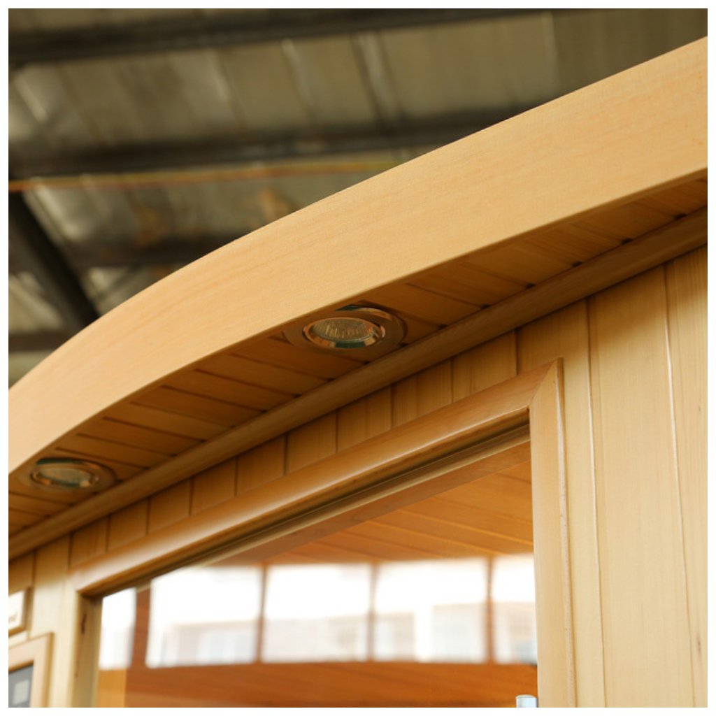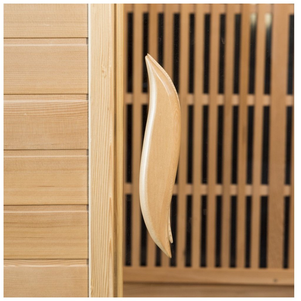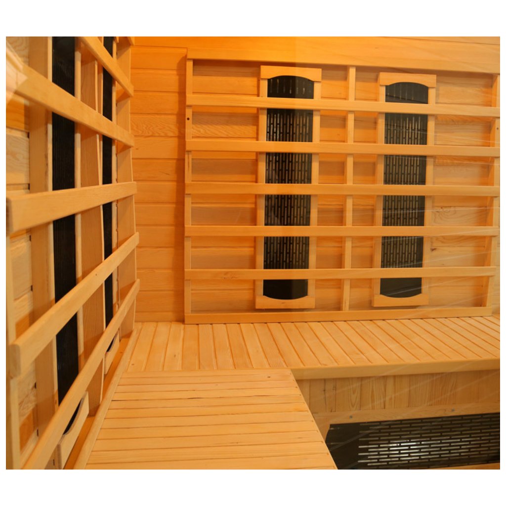 A szauna fűtőeleme 3 szén és 6 db kerámia emitter, amelyek infravörös sugárzást hoznak létre. Ugyanezt az energiát állítja elő az emberi szervezet is, tehát ezteljesen biztonságos. A beltéri és kültéri digitális panel segítségével beállíthatja a kívánt hőmérsékletet, és nem kell más miatt aggódnia.