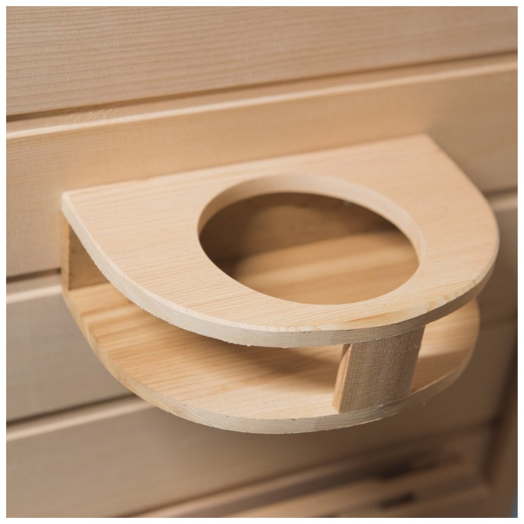 Egy apróság 2 polc formájában italok számára feldobja a tartózkodást. a szauna sokkal kellemesebb. Így nem kell állandóan arra gondolnia, hogy véletlenül kiöntheti az italát. Edzett üvegből készült biztonsági ajtó van beépítve. A hő biztosan nem távozik rajtuk.