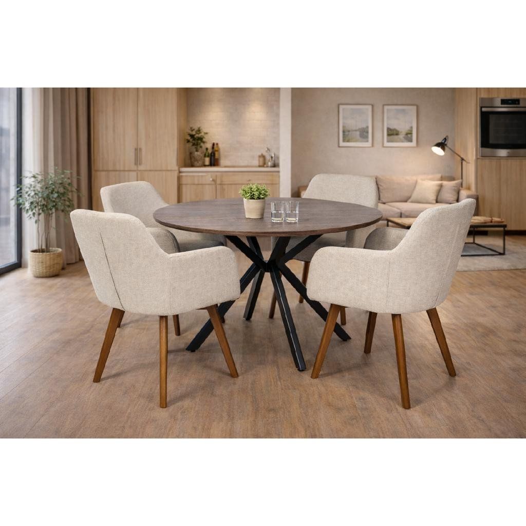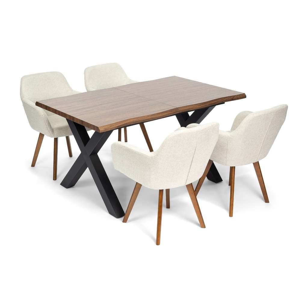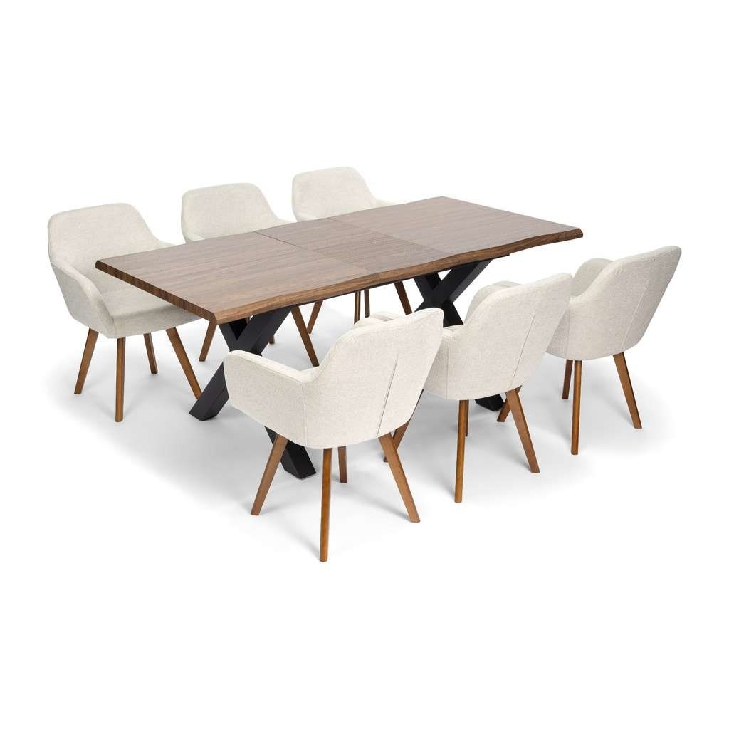 A szövet ülés kellemes tapintású, míg a masszív fa lábak a szék stabilitását és időtállóságát garantálják. A retro és glamour stíluselemek elegáns megjelenést kölcsönöznek bármilyen étkezőnek vagy nappalinak.
