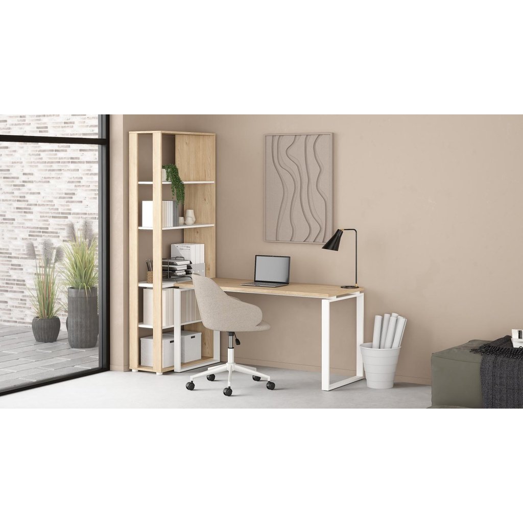 A tartós fa asztallap természetes megjelenése és kellemes tapintása mellett stabil és ellenálló munkafelületet nyújt. A masszív fém váz biztosítja az íróasztal hosszú élettartamát és a stabilitását, így akár napi használatra is tökéletesen alkalmas.