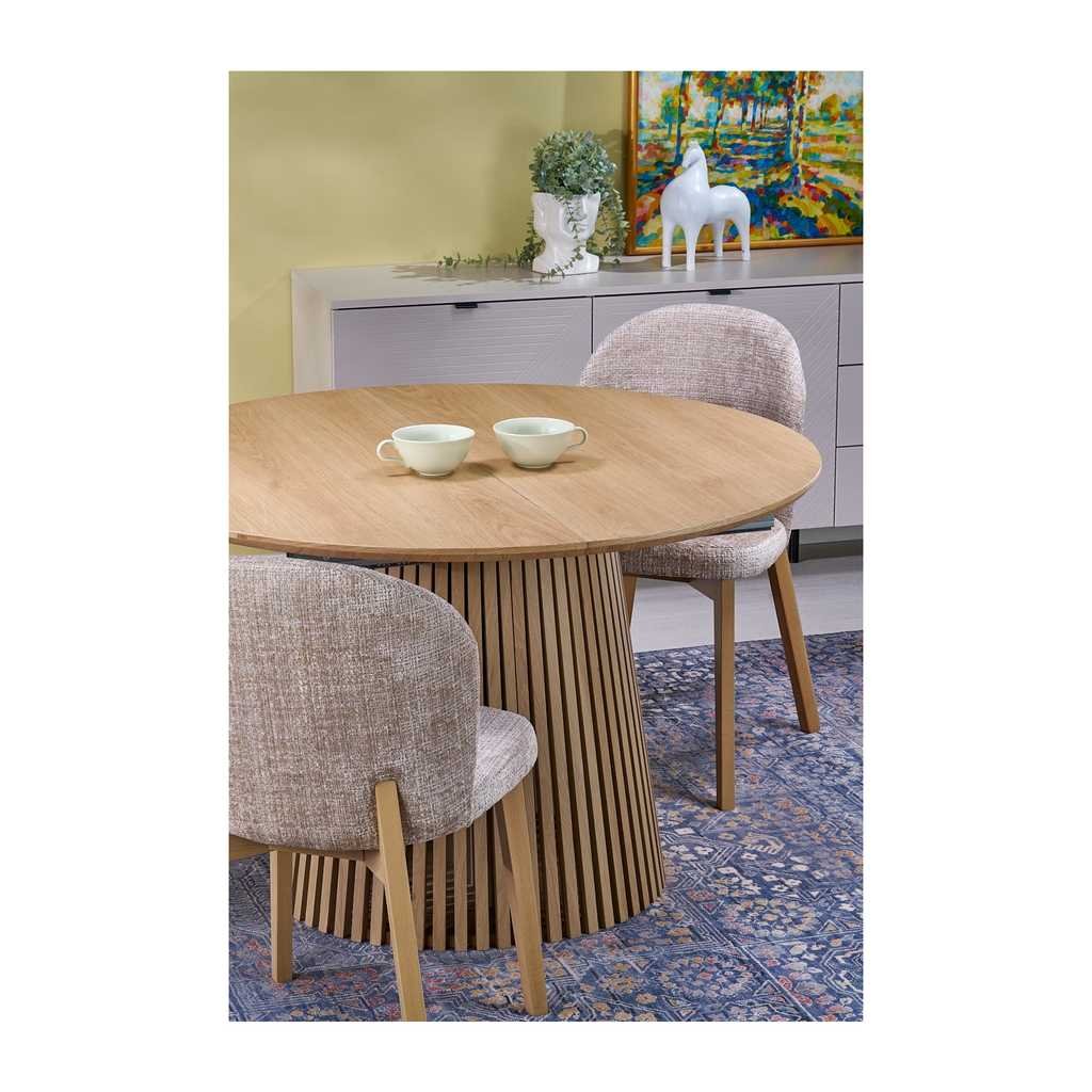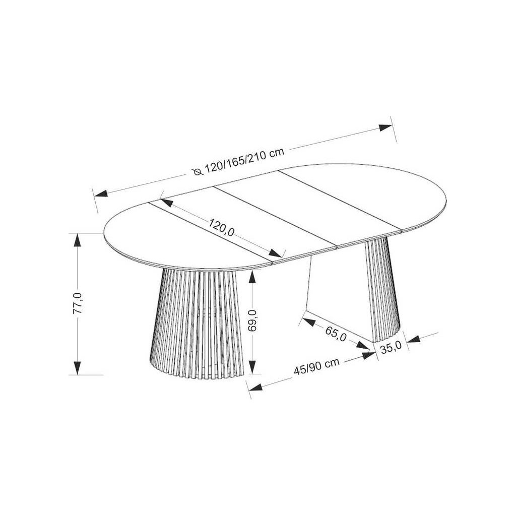 Ez az asztal bővíthető, így könnyedén alkalmazkodik a vendégek létszámához, akár 8 személy részére is kényelmesen elférnek körülötte. Az eredeti mérete meghosszabbítva 210 cm-re növelhető, ami kiváló megoldás nagyobb családi ebédekhez vagy baráti összejövetelekhez.