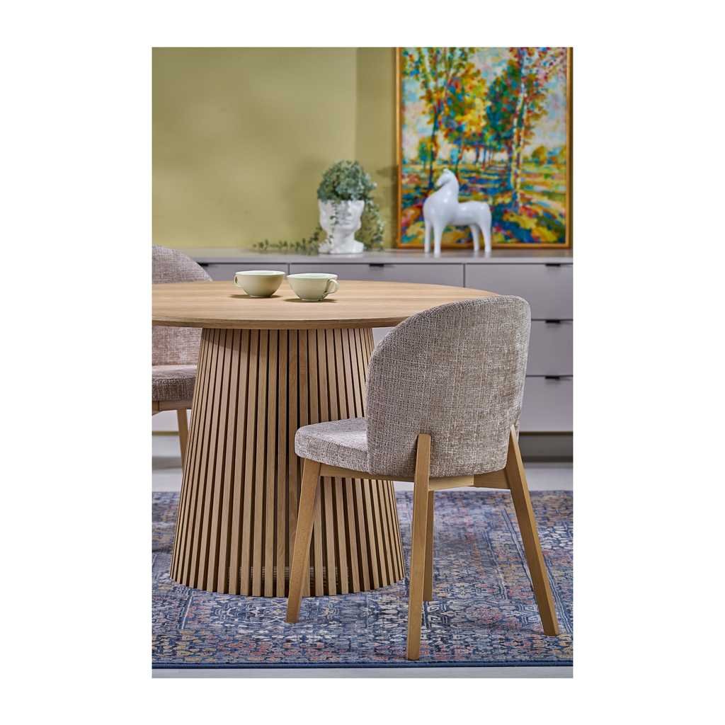 A Sipario étkezőasztal ideális választás, ha egy praktikus, ugyanakkor esztétikus bútordarabot keres étkezőjébe. Természetes fa anyagának köszönhetően kellemes, meleg hangulatot teremt otthonában, miközben masszív és tartós kialakítása hosszú éveken át szolgálja kényelmét. Az asztal különleges, kör-ellipszis formája modern megjelenést kölcsönöz a térnek.