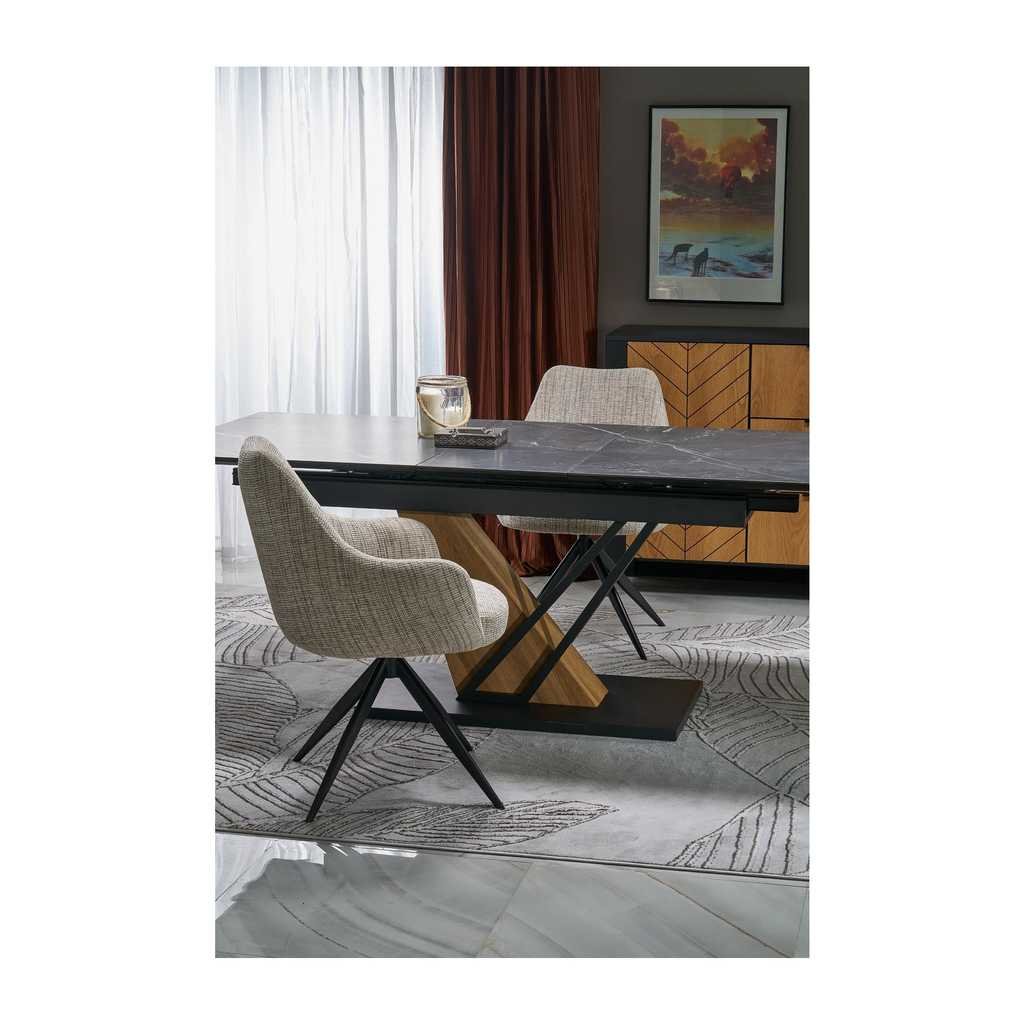 A Sterzo étkezőasztal modern és funkcionális megoldást kínál minden otthon számára. Masszív kő asztallapja és stabil fémváza garantálják a hosszú élettartamot és a megbízhatóságot. Az asztal 140 cm hosszú, de bővíthető akár 180 cm-re is, így ideális akár 6 személy kényelmes elhelyezésére is. Tökéletes választás családi vacsorákhoz vagy baráti összejövetelekhez.