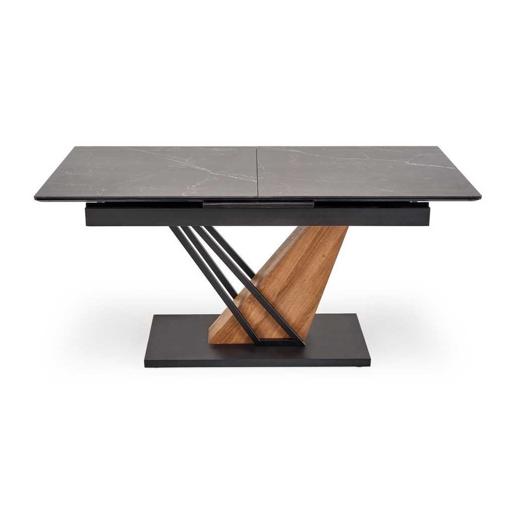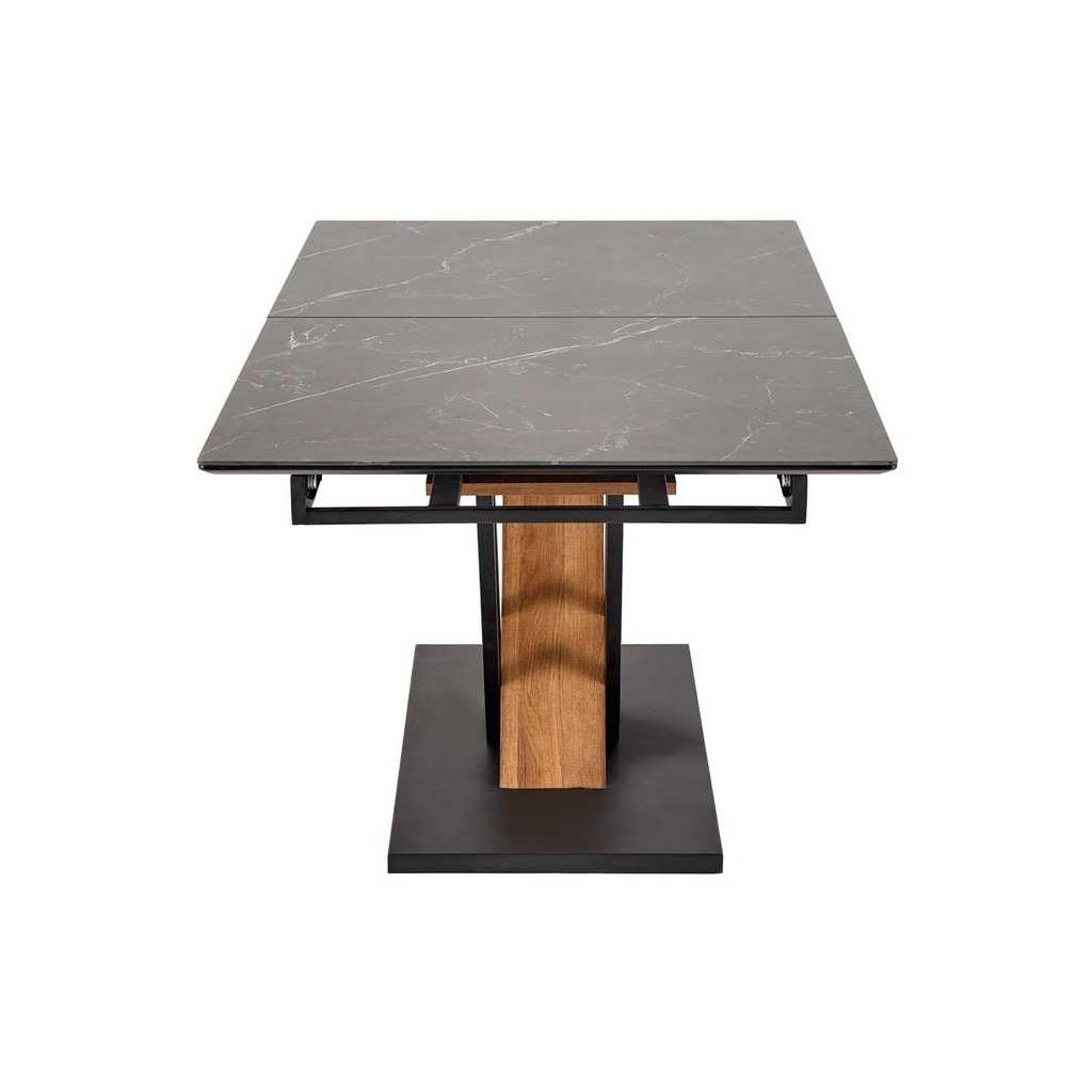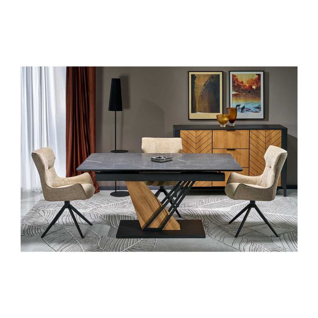 A Sterzo étkezőasztal egy stílusos és praktikus megoldás minden modern étkezőbe. Masszív kőből készült asztallapja és fém alapja biztosítják a hosszú élettartamot és stabilitást. Az egyedi kialakítású láb részlet, amely fa és fém kombinációjából áll, különleges megjelenést kölcsönöz az asztalnak, amely garantáltan feldobja otthona hangulatát.